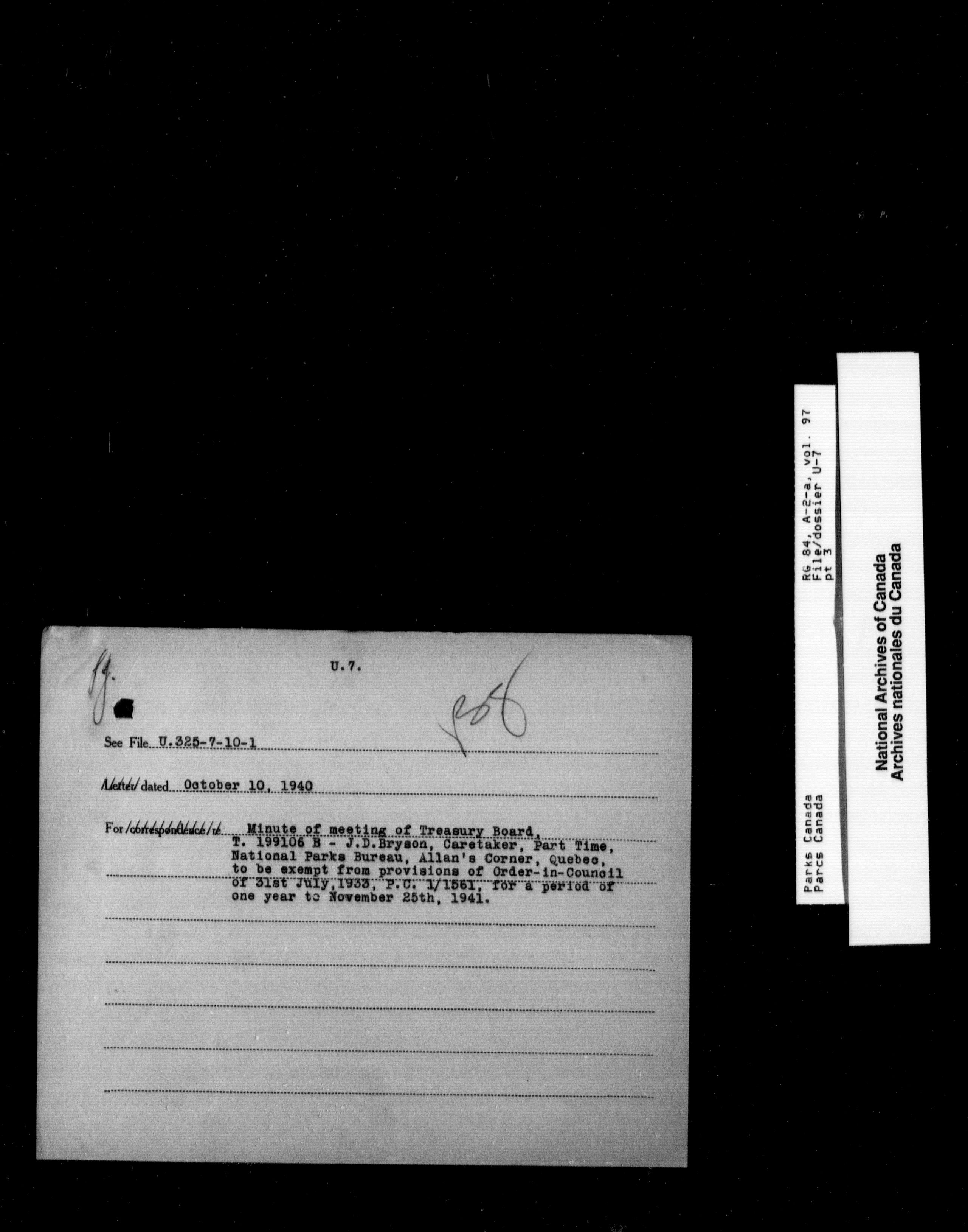 Department of Canadian Heritage, Canadian Parks Service : Park/subject classification system - 9388