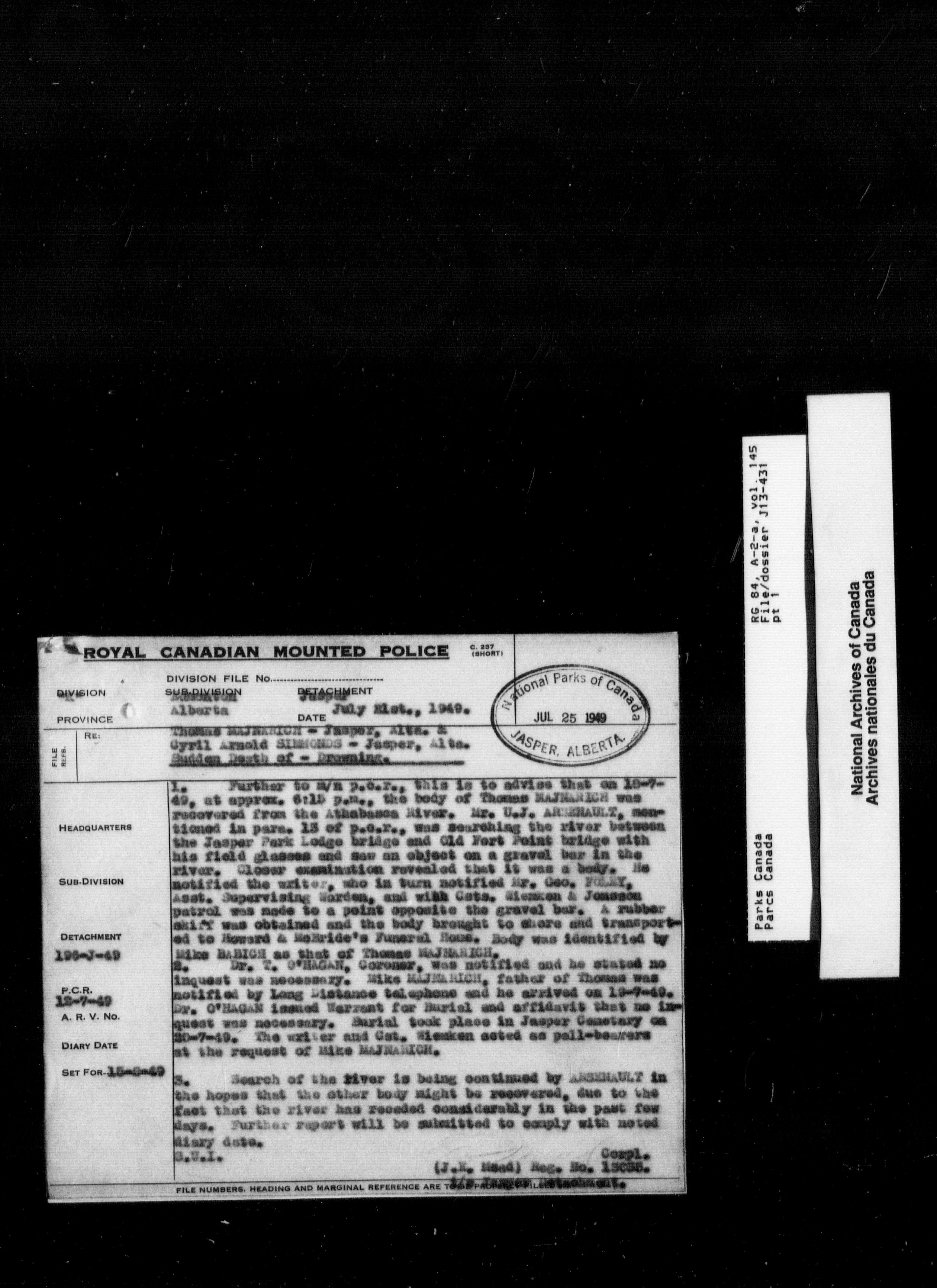Department of Canadian Heritage, Canadian Parks Service : Park/subject classification system : T-9391