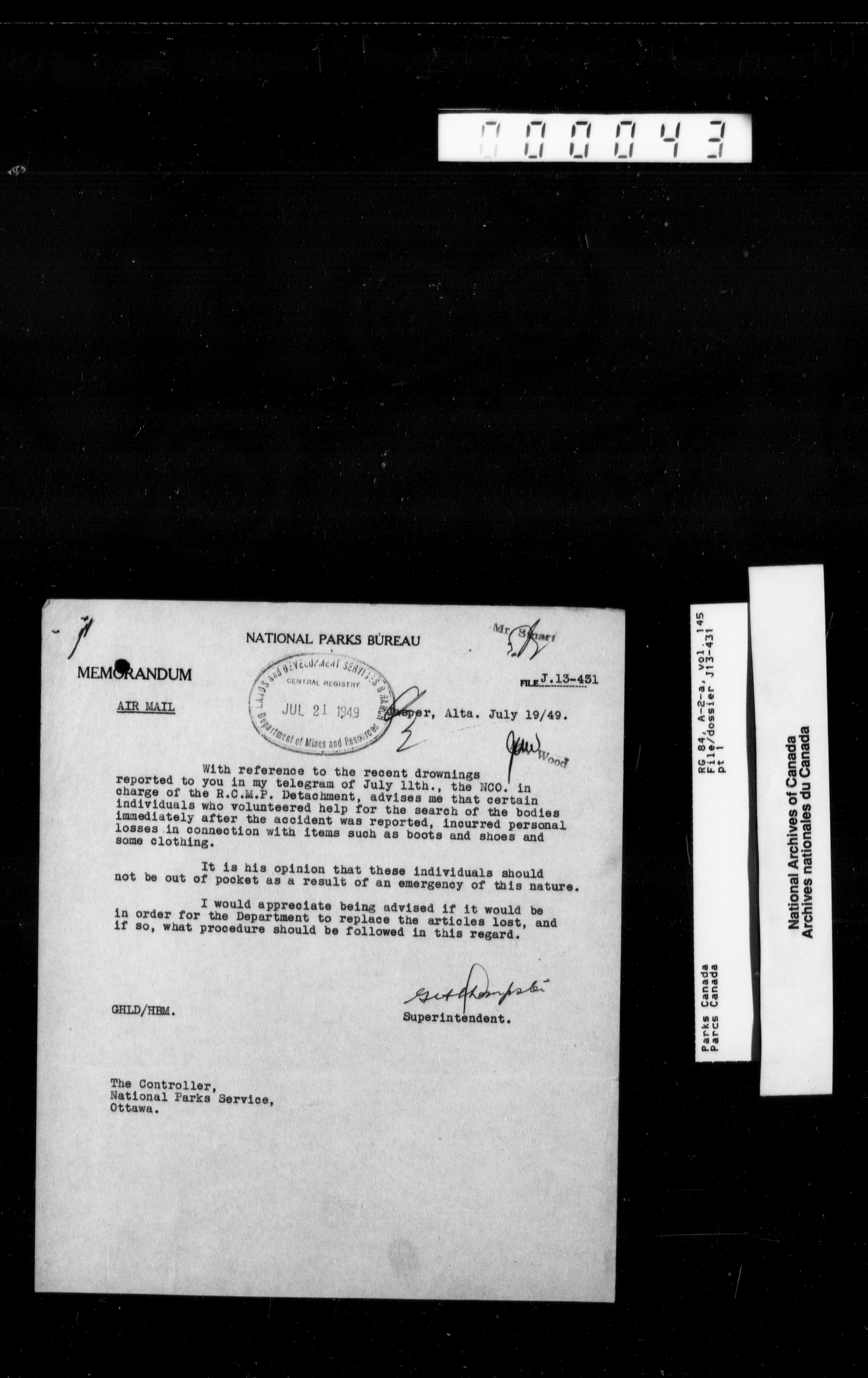 Department of Canadian Heritage, Canadian Parks Service : Park/subject classification system - 9391
