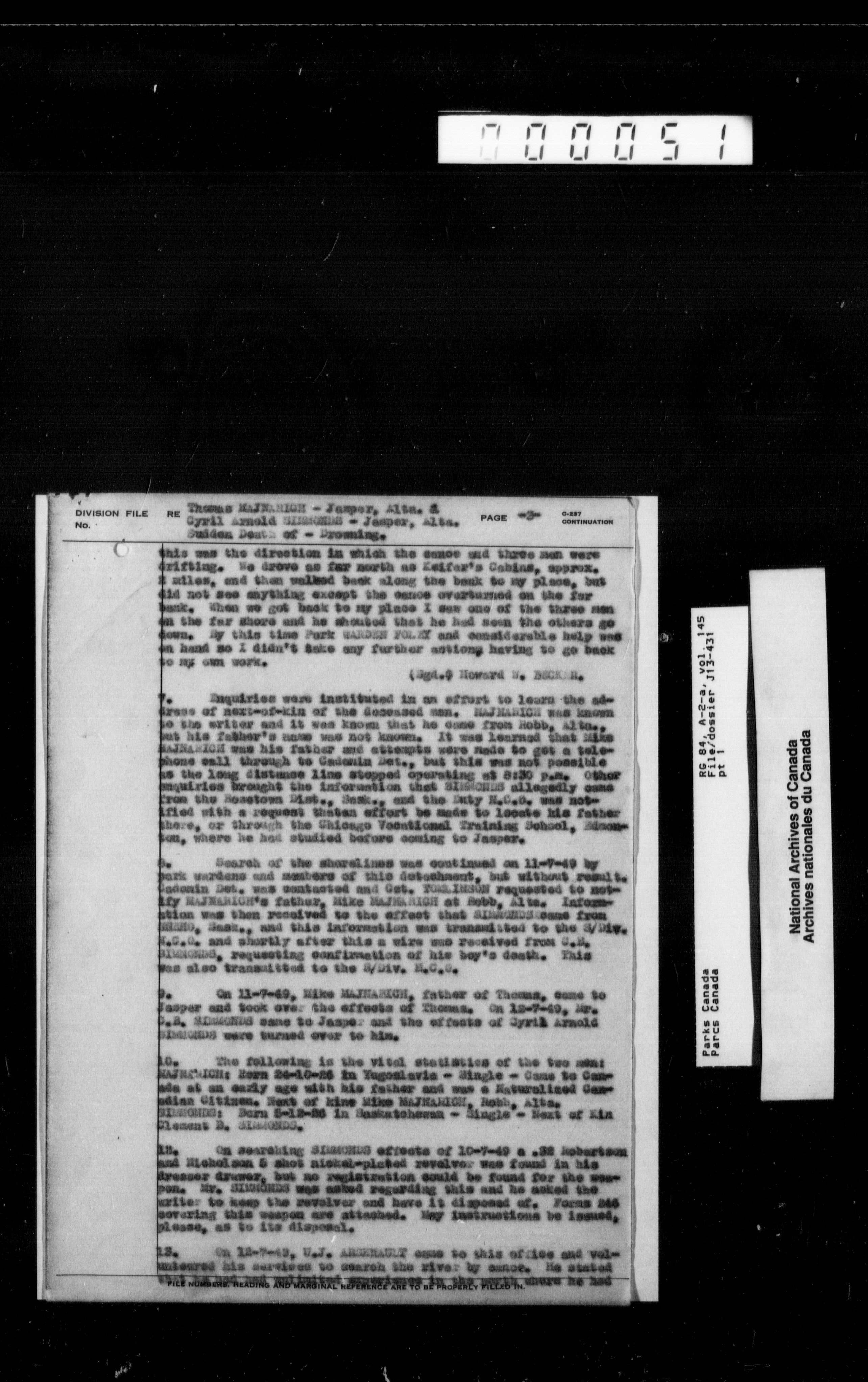 Department of Canadian Heritage, Canadian Parks Service : Park/subject classification system - 9391