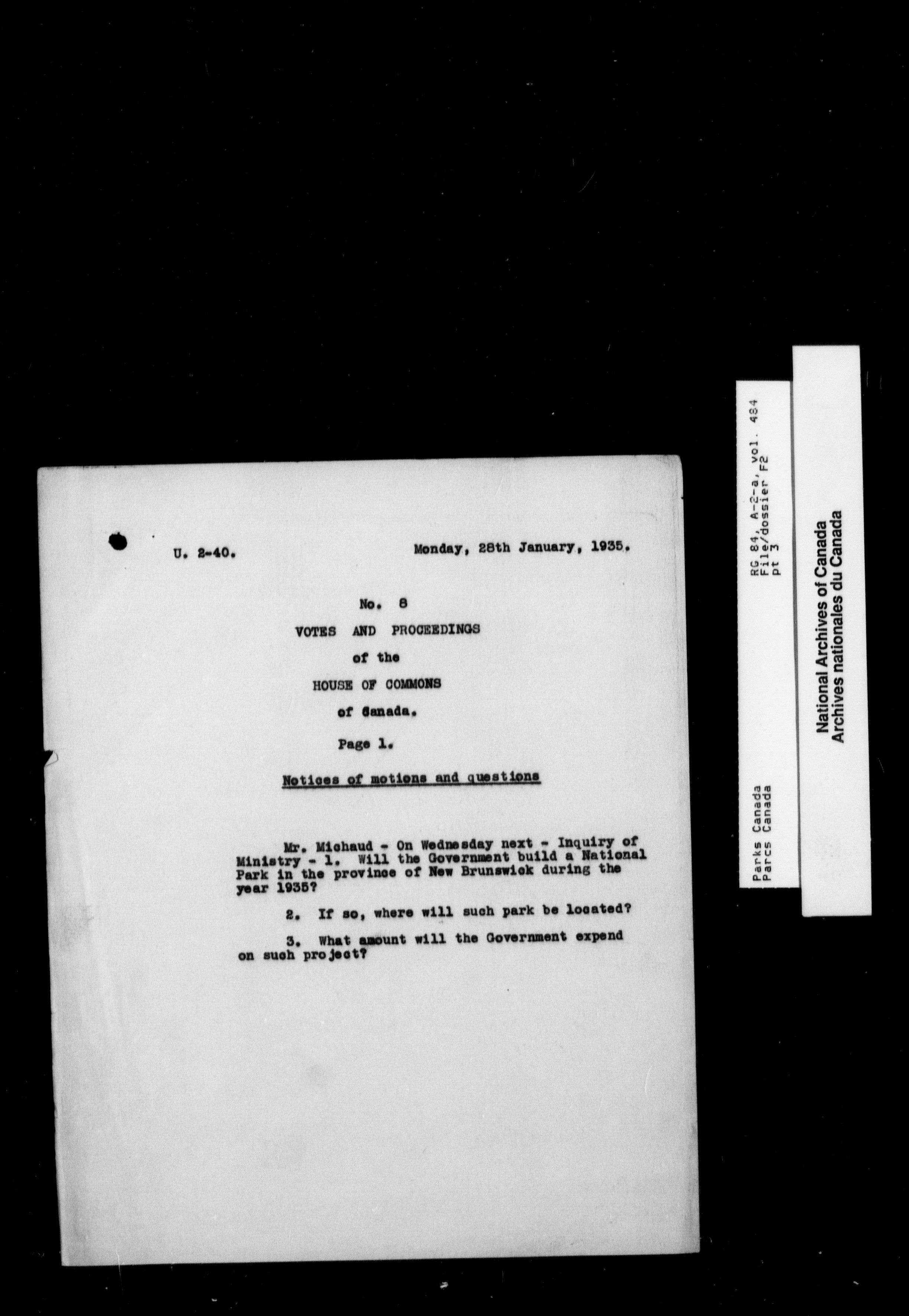 Department of Canadian Heritage, Canadian Parks Service : Park/subject classification system - 9400