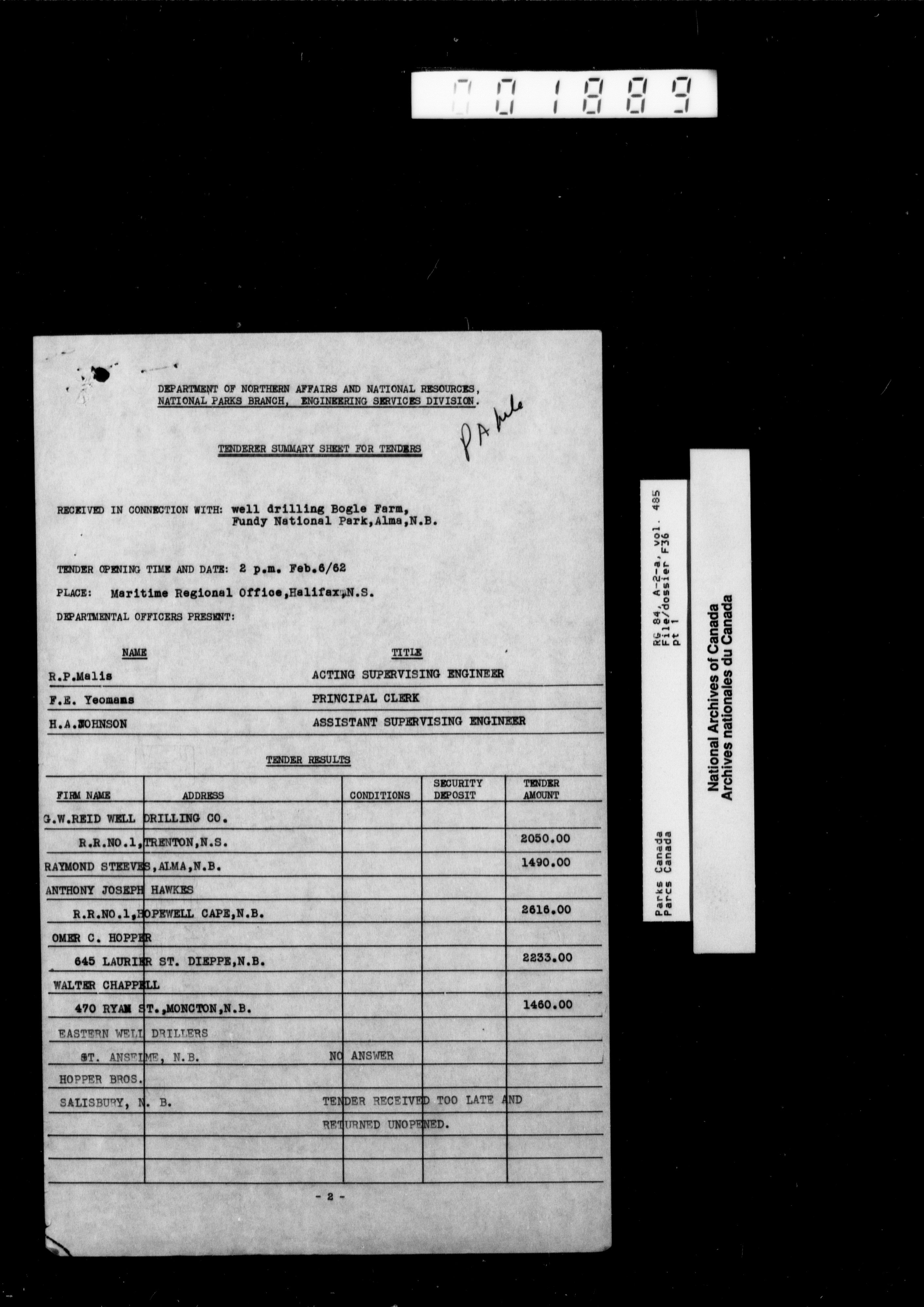 Department of Canadian Heritage, Canadian Parks Service : Park/subject classification system - 9401
