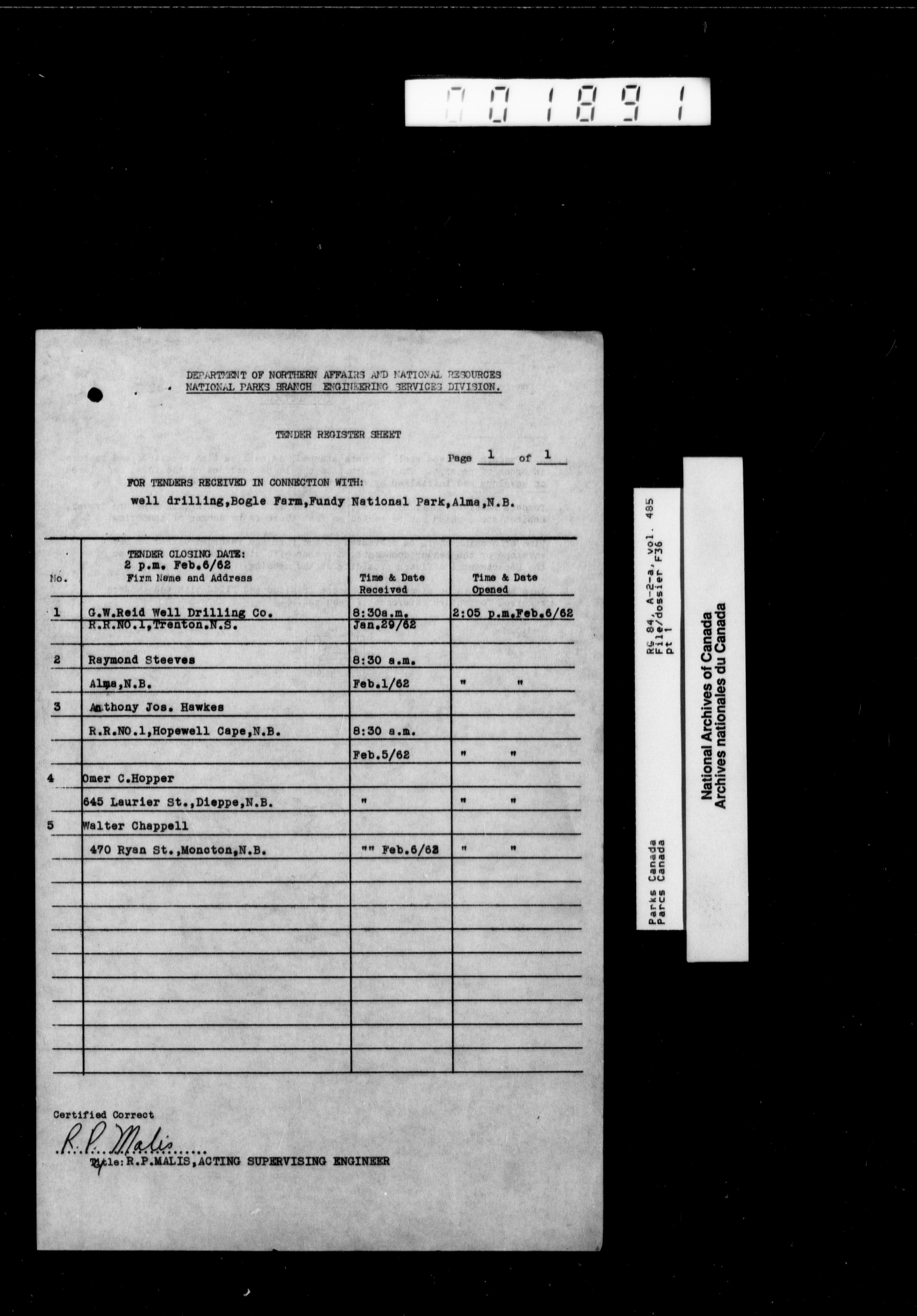 Department of Canadian Heritage, Canadian Parks Service : Park/subject classification system - 9401