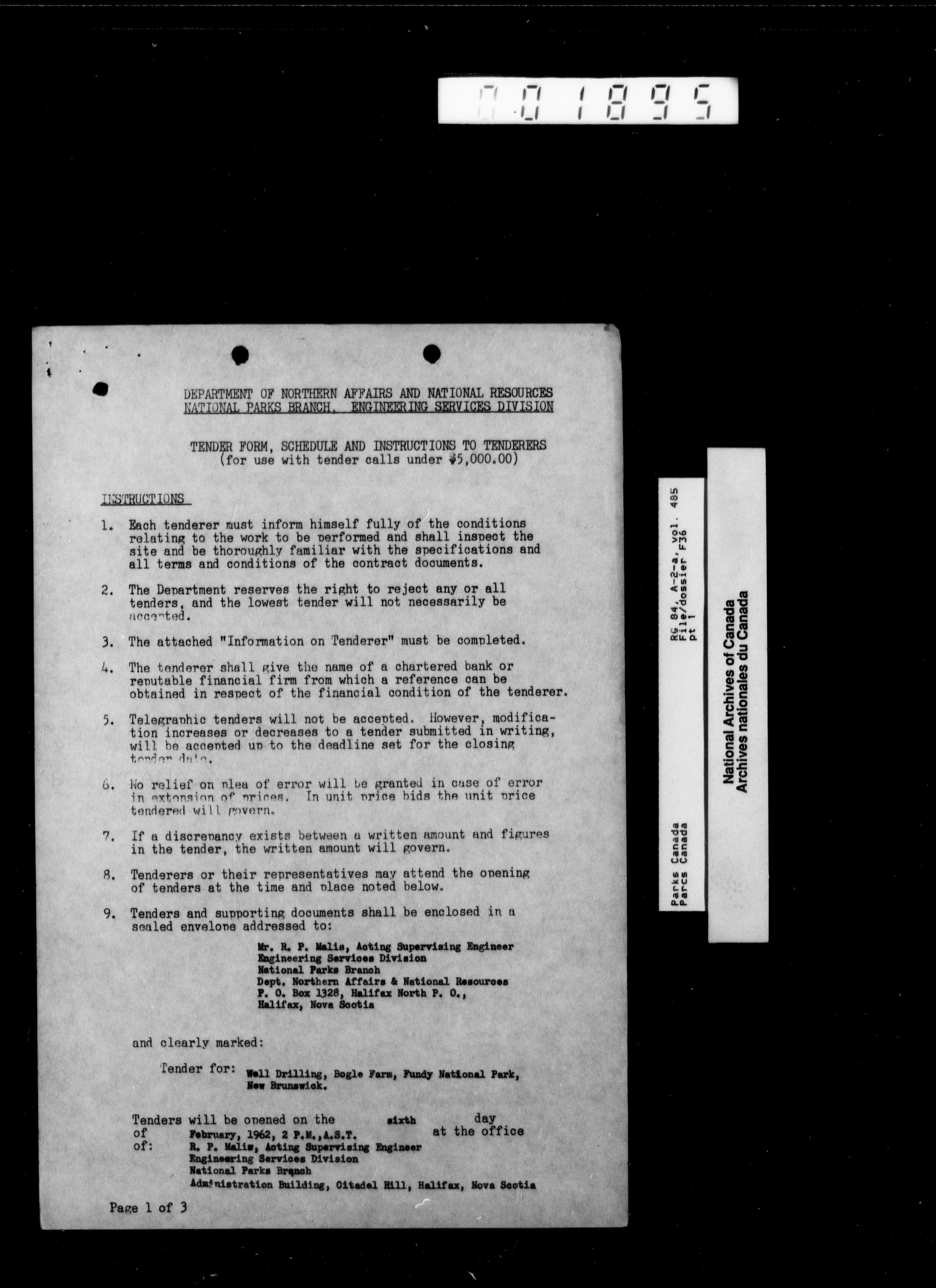 Department of Canadian Heritage, Canadian Parks Service : Park/subject classification system - 9401