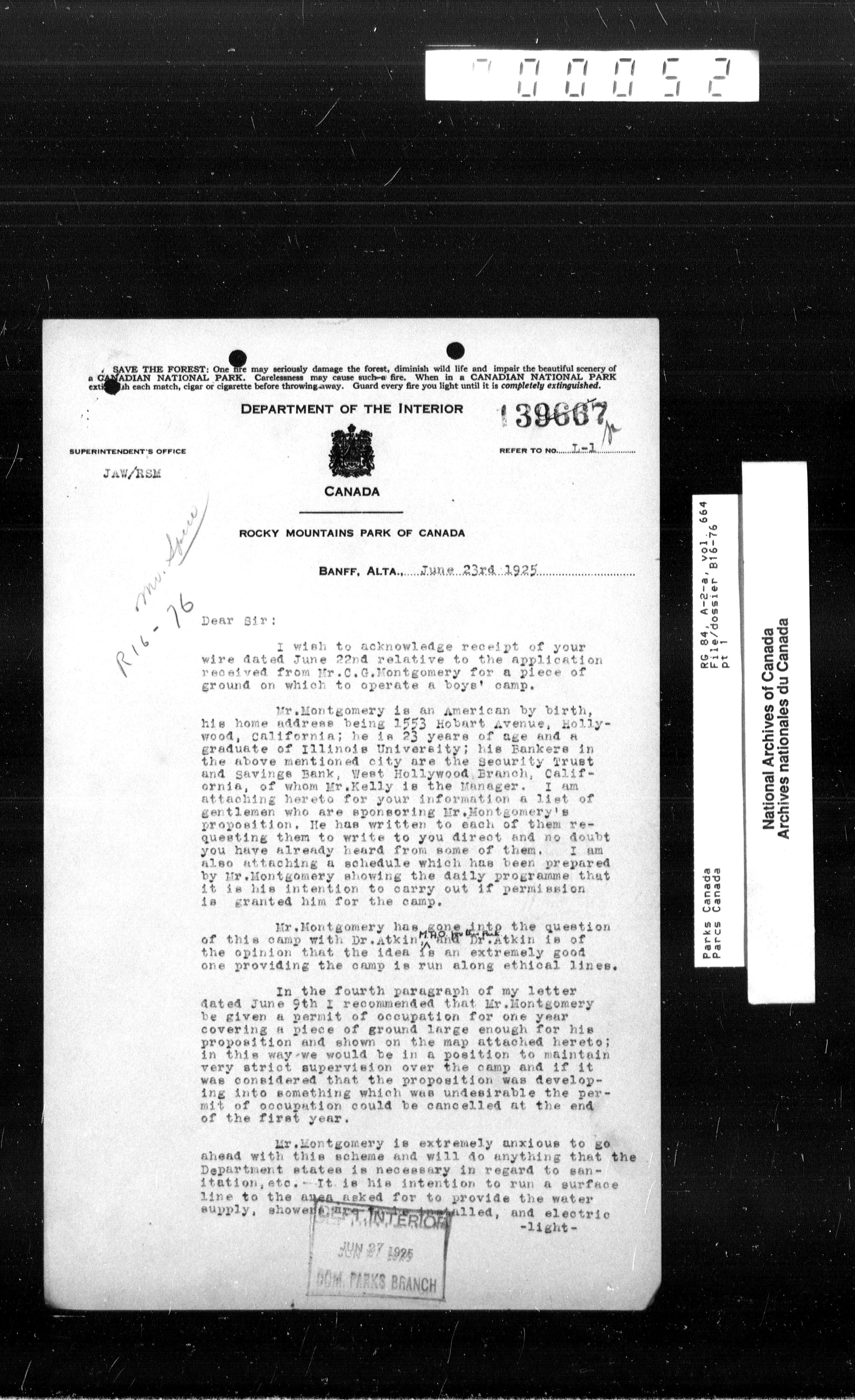 Department of Canadian Heritage, Canadian Parks Service : Park/subject classification system - 9413