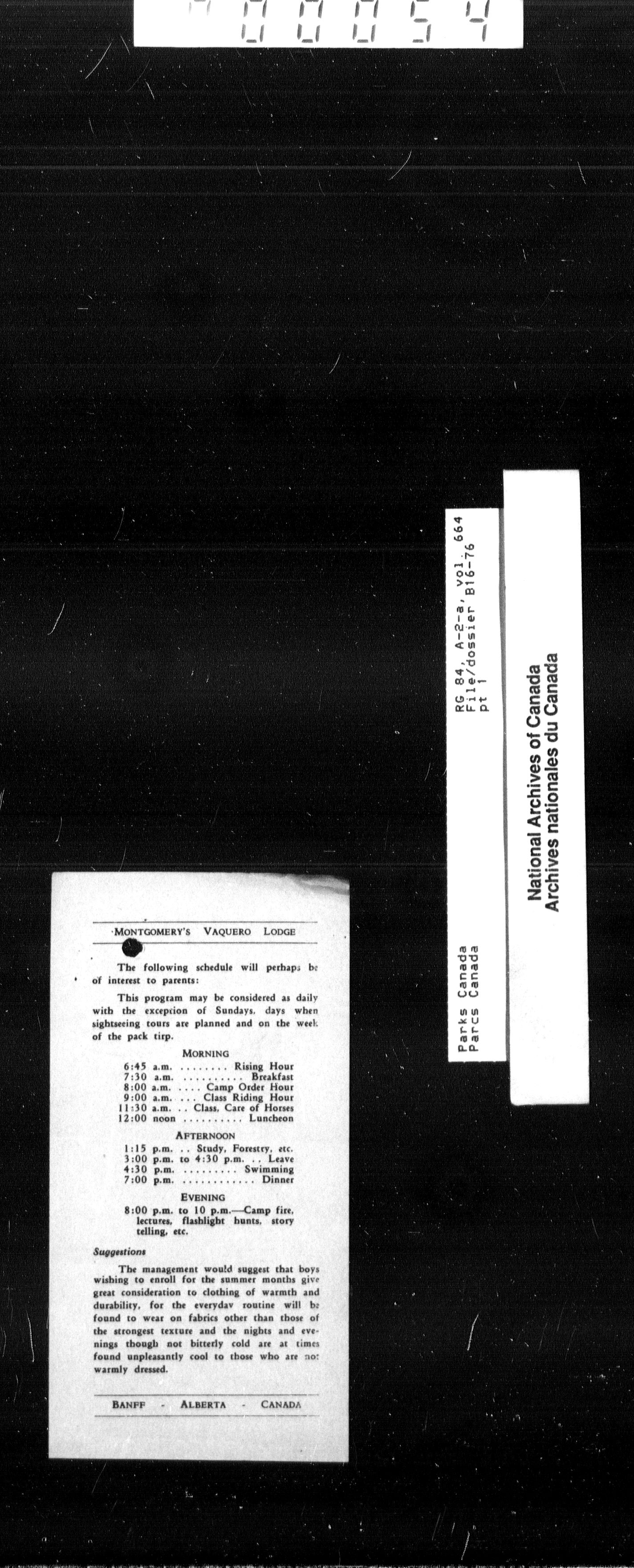 Department of Canadian Heritage, Canadian Parks Service : Park/subject classification system - 9413