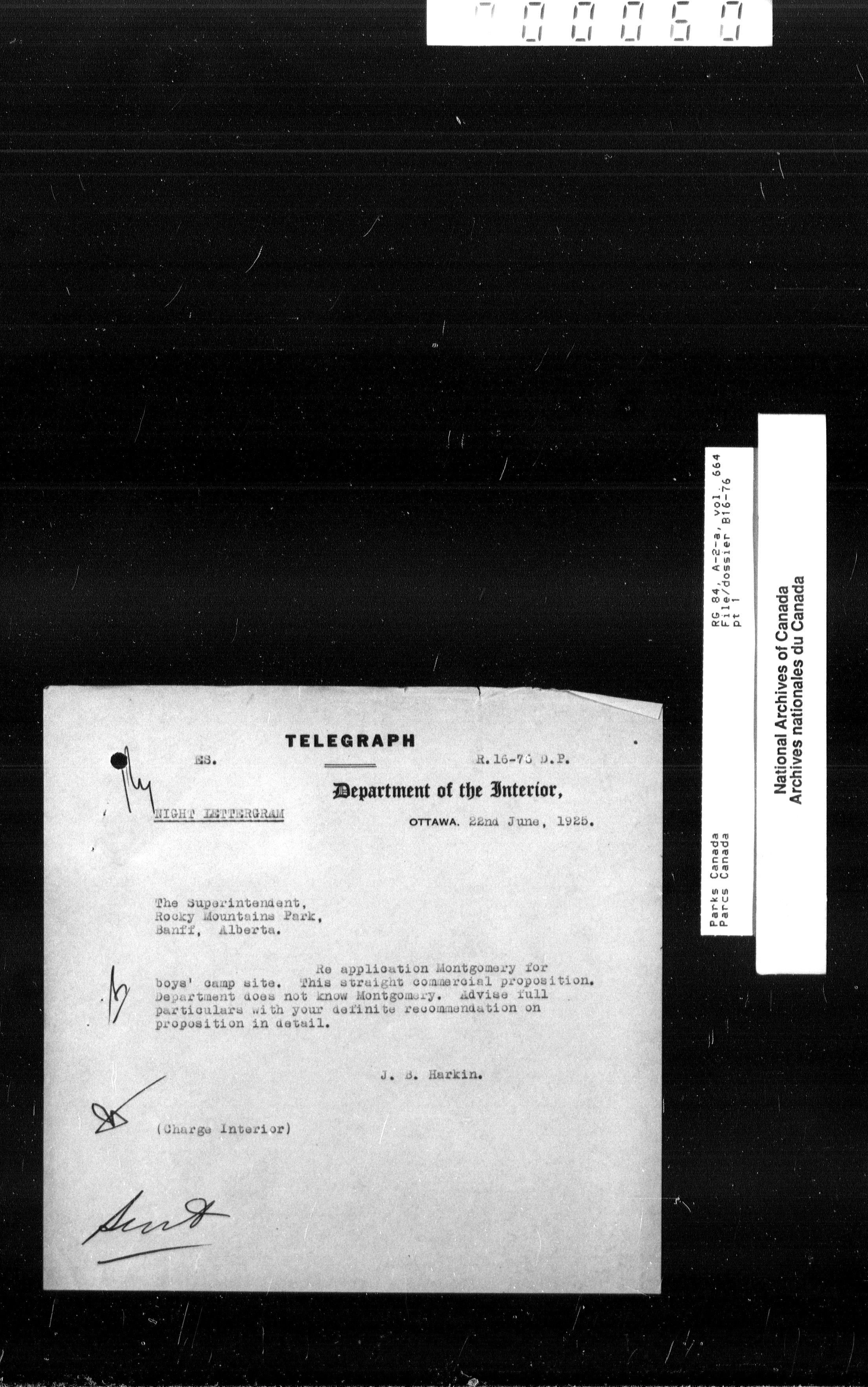 Department of Canadian Heritage, Canadian Parks Service : Park/subject classification system - 9413