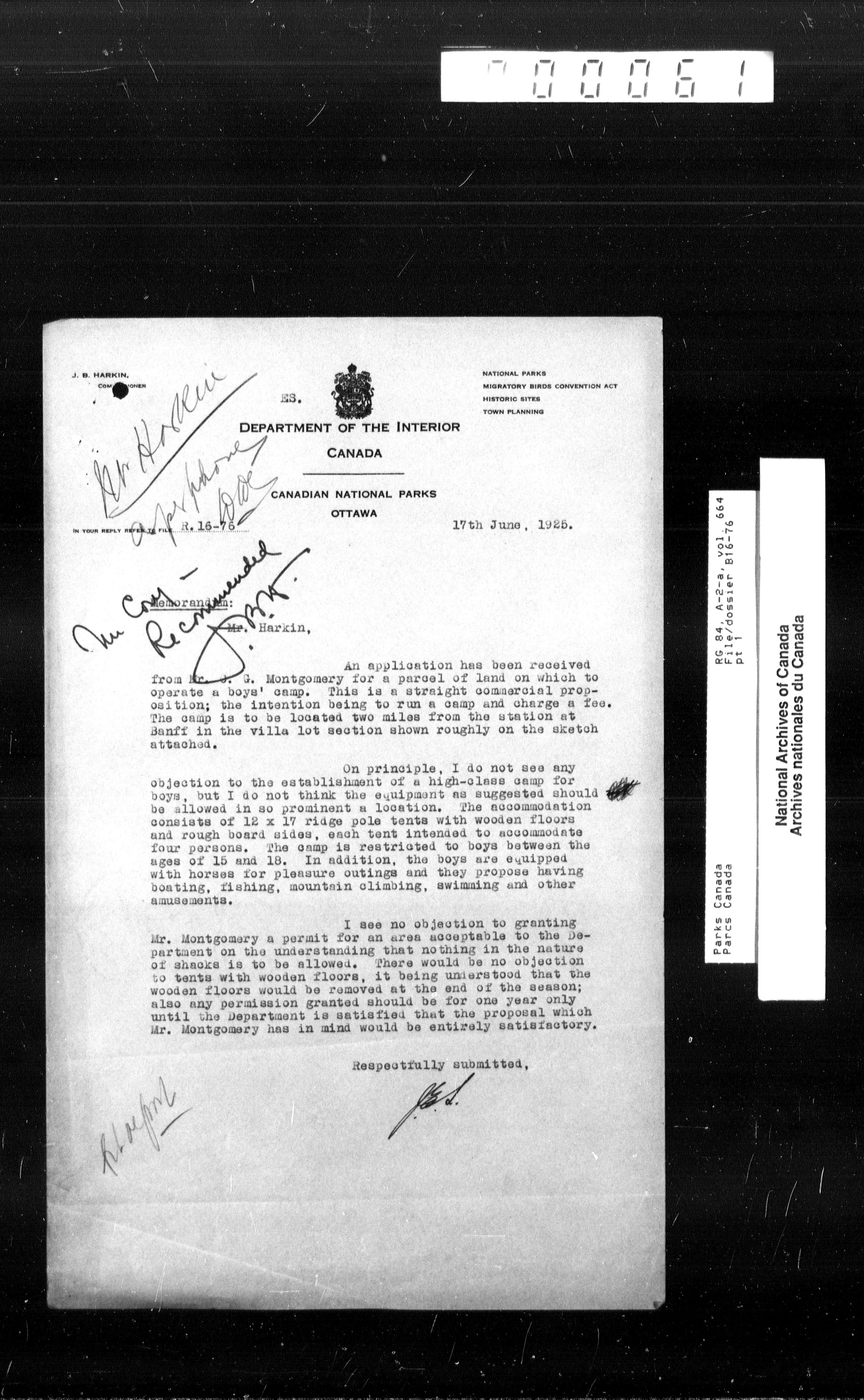 Department of Canadian Heritage, Canadian Parks Service : Park/subject classification system - 9413