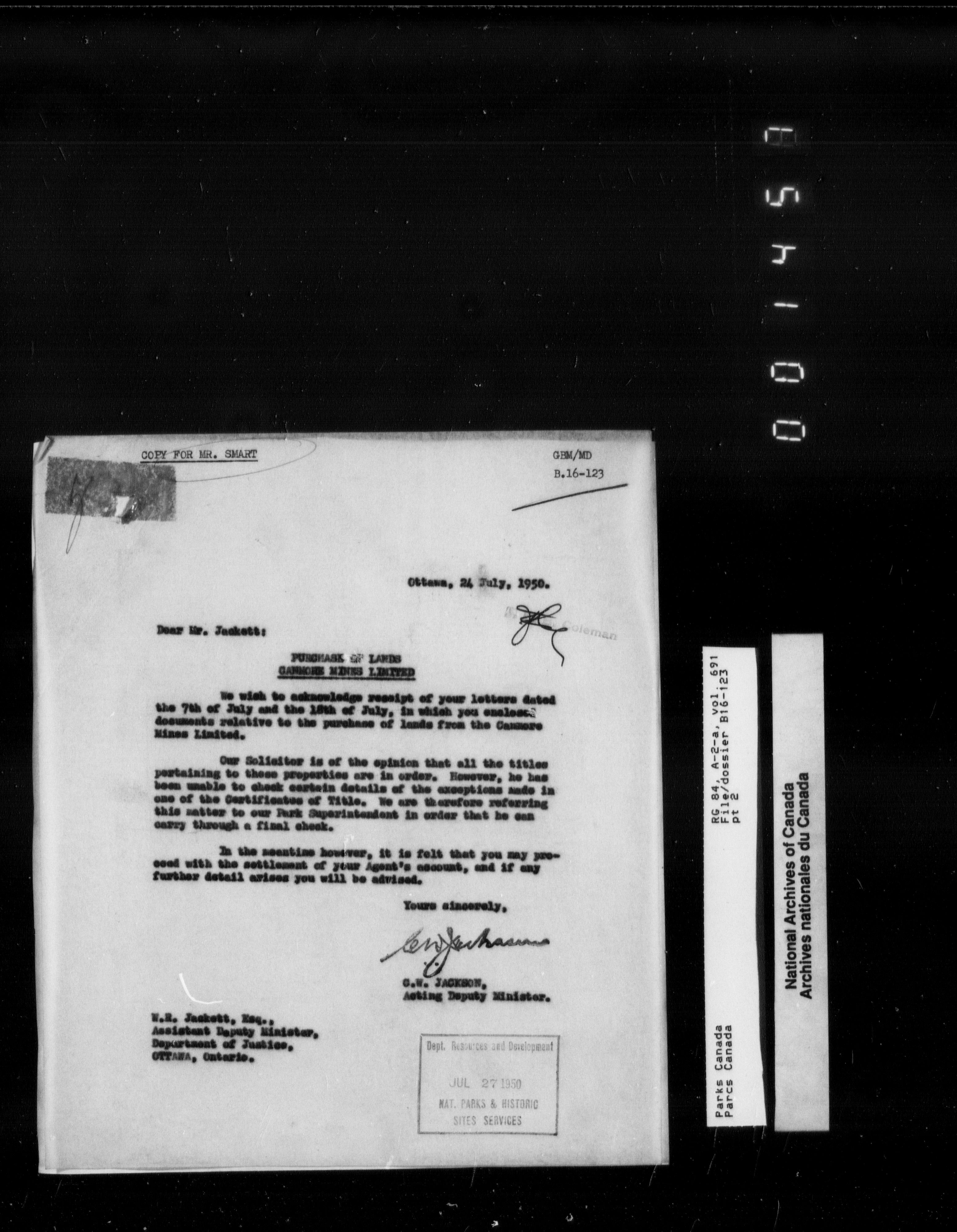 Department of Canadian Heritage, Canadian Parks Service : Park/subject classification system - 9433