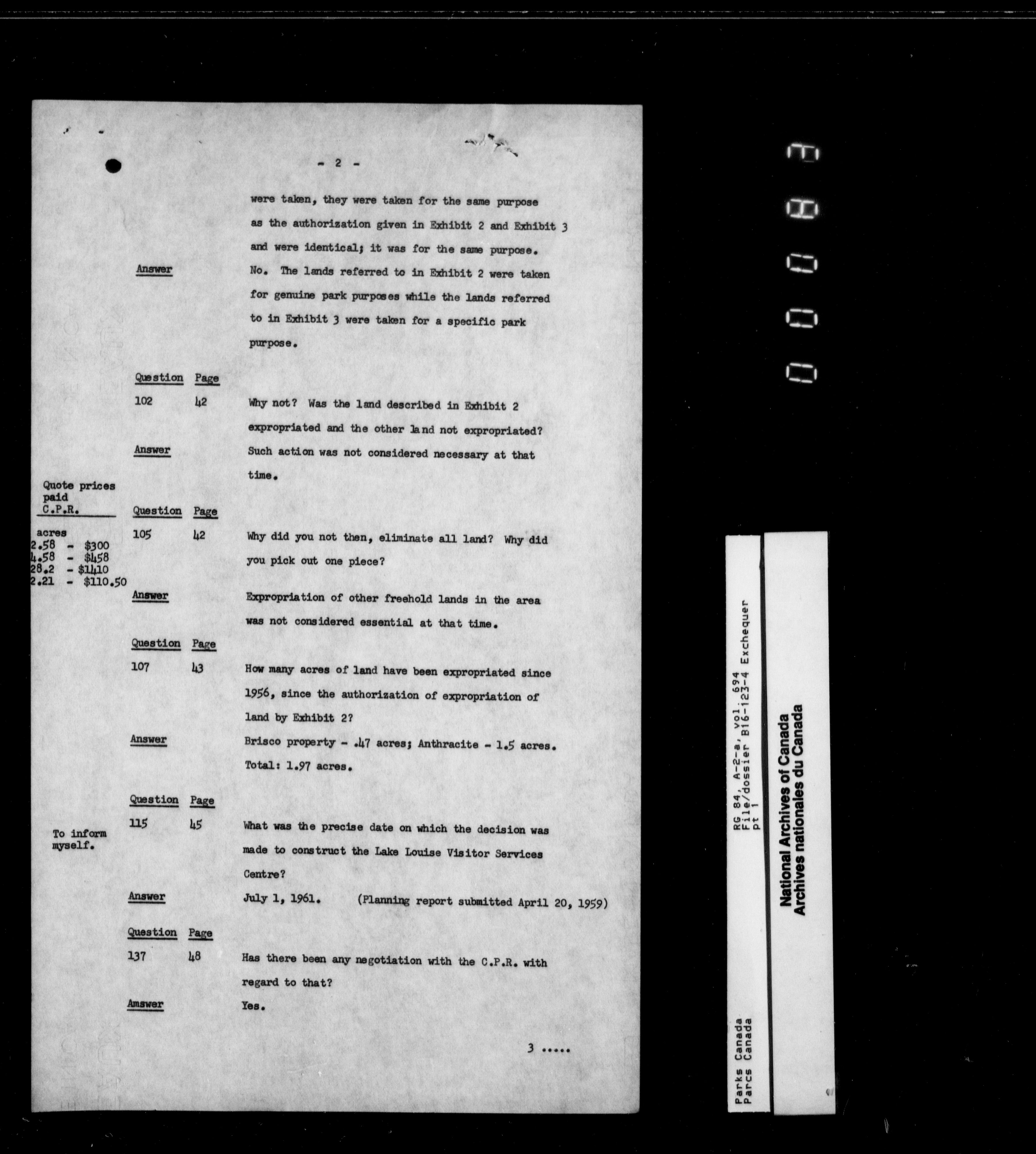 Department of Canadian Heritage, Canadian Parks Service : Park/subject classification system - 9438