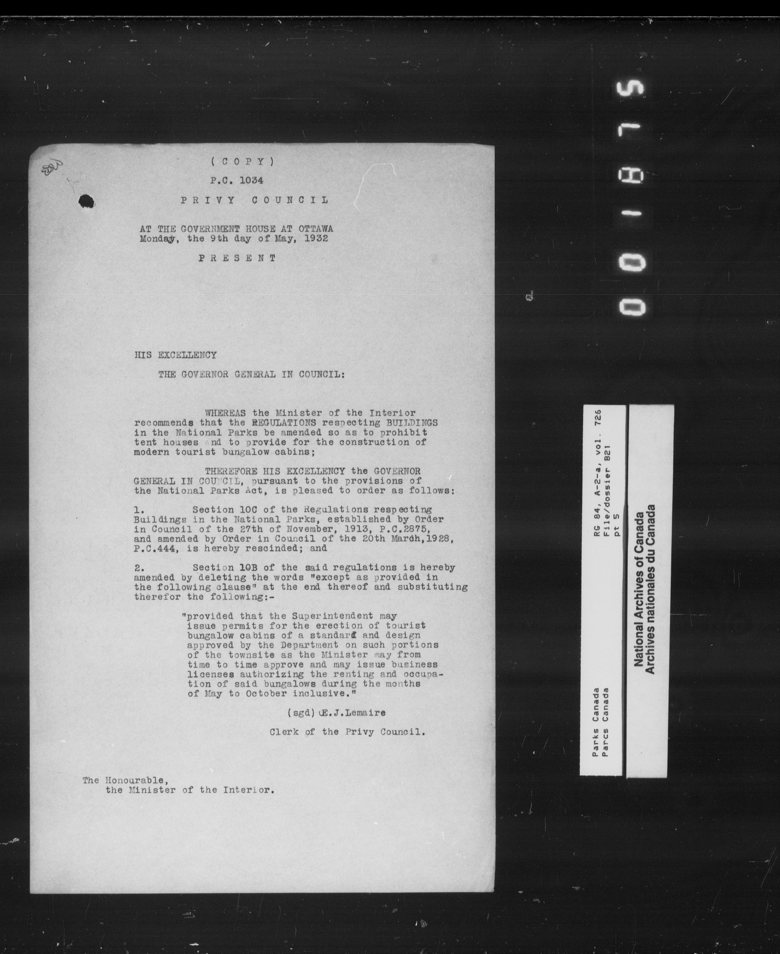 Department of Canadian Heritage, Canadian Parks Service : Park/subject classification system - 9464