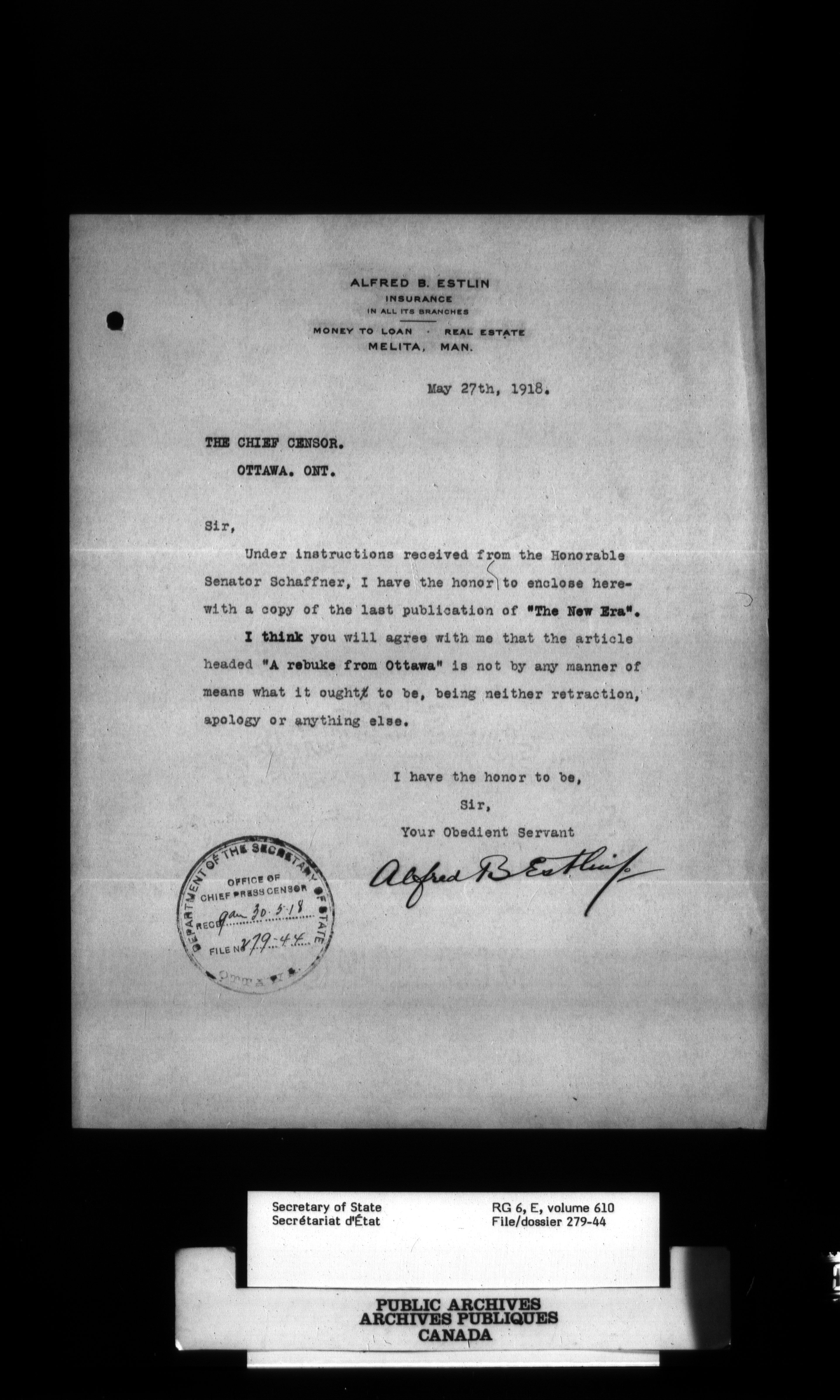 Secretary of State : Chief Press Censor, 1915-1920 - 95