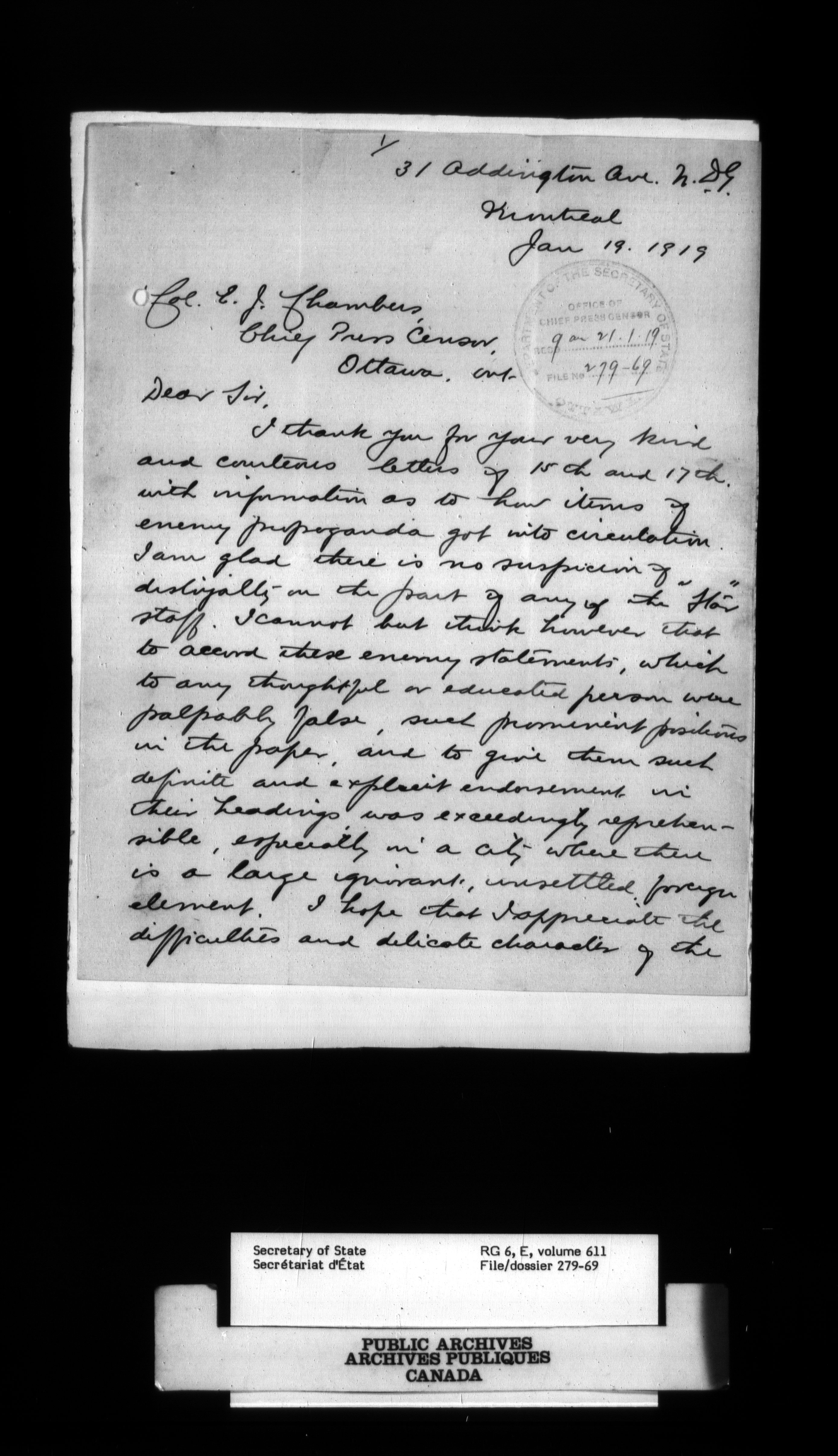 Secretary of State : Chief Press Censor, 1915-1920 - 95