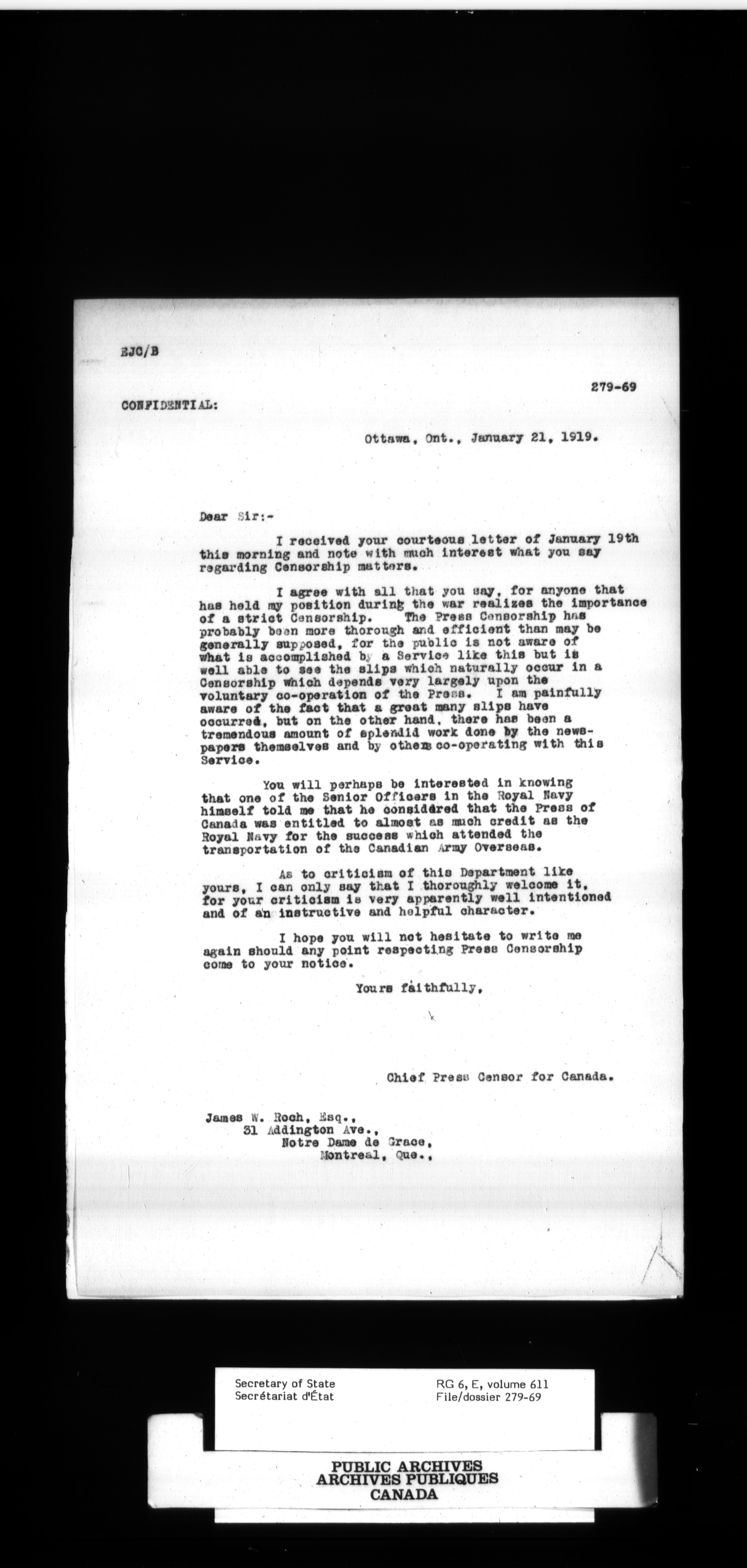 Secretary of State : Chief Press Censor, 1915-1920 - 95