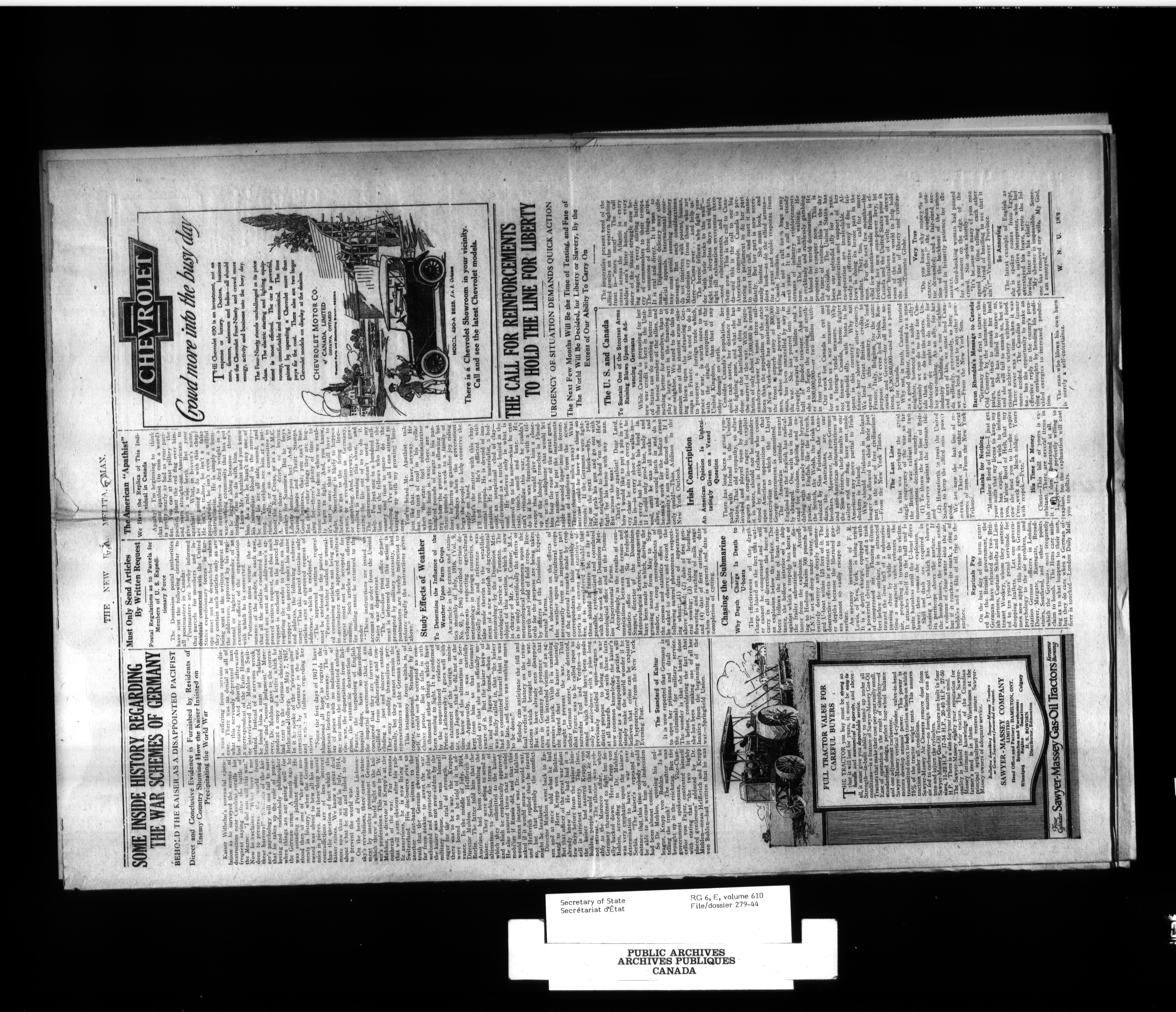 Secretary of State : Chief Press Censor, 1915-1920 - 95