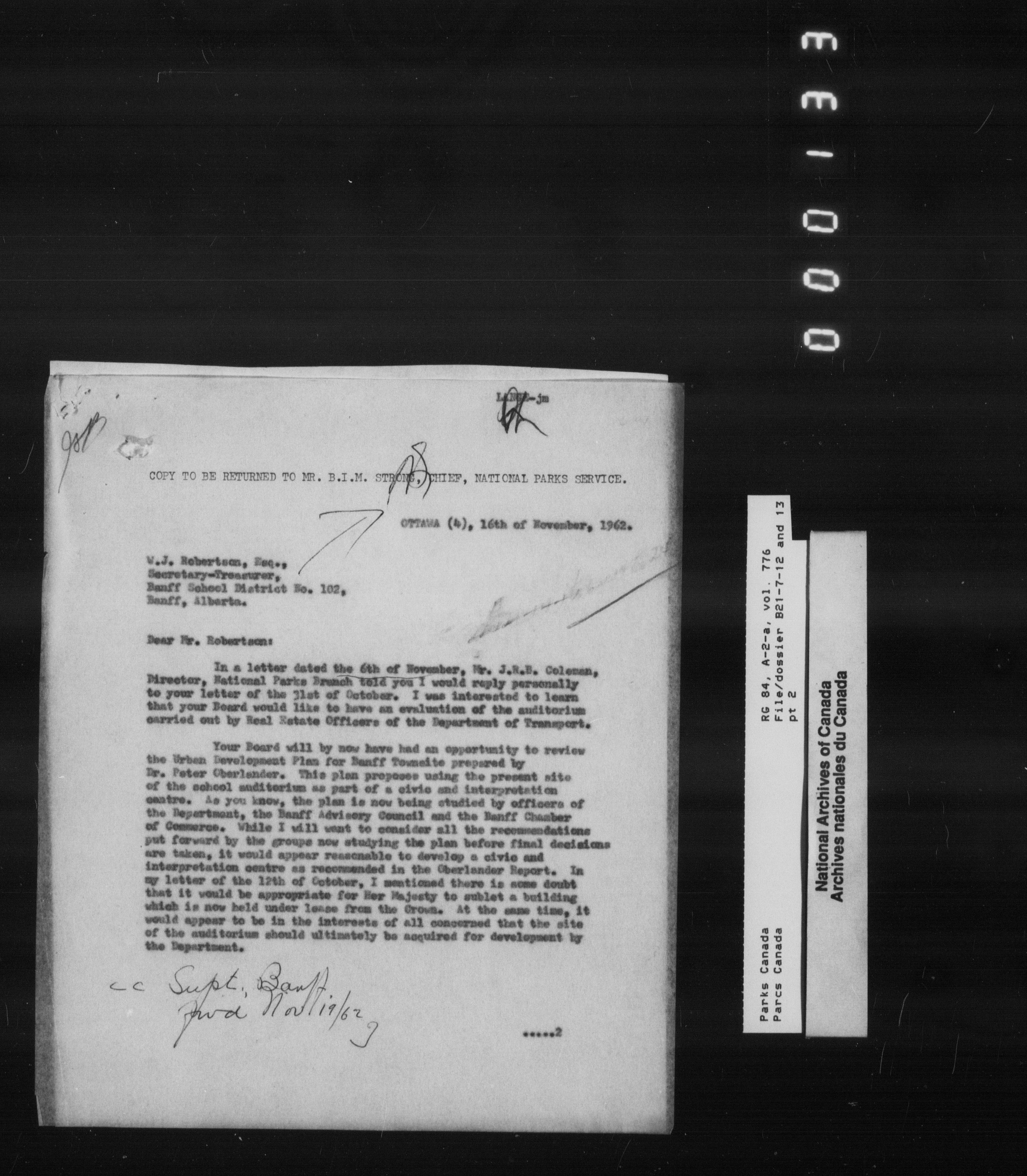 Department of Canadian Heritage, Canadian Parks Service : Park/subject classification system - 9503