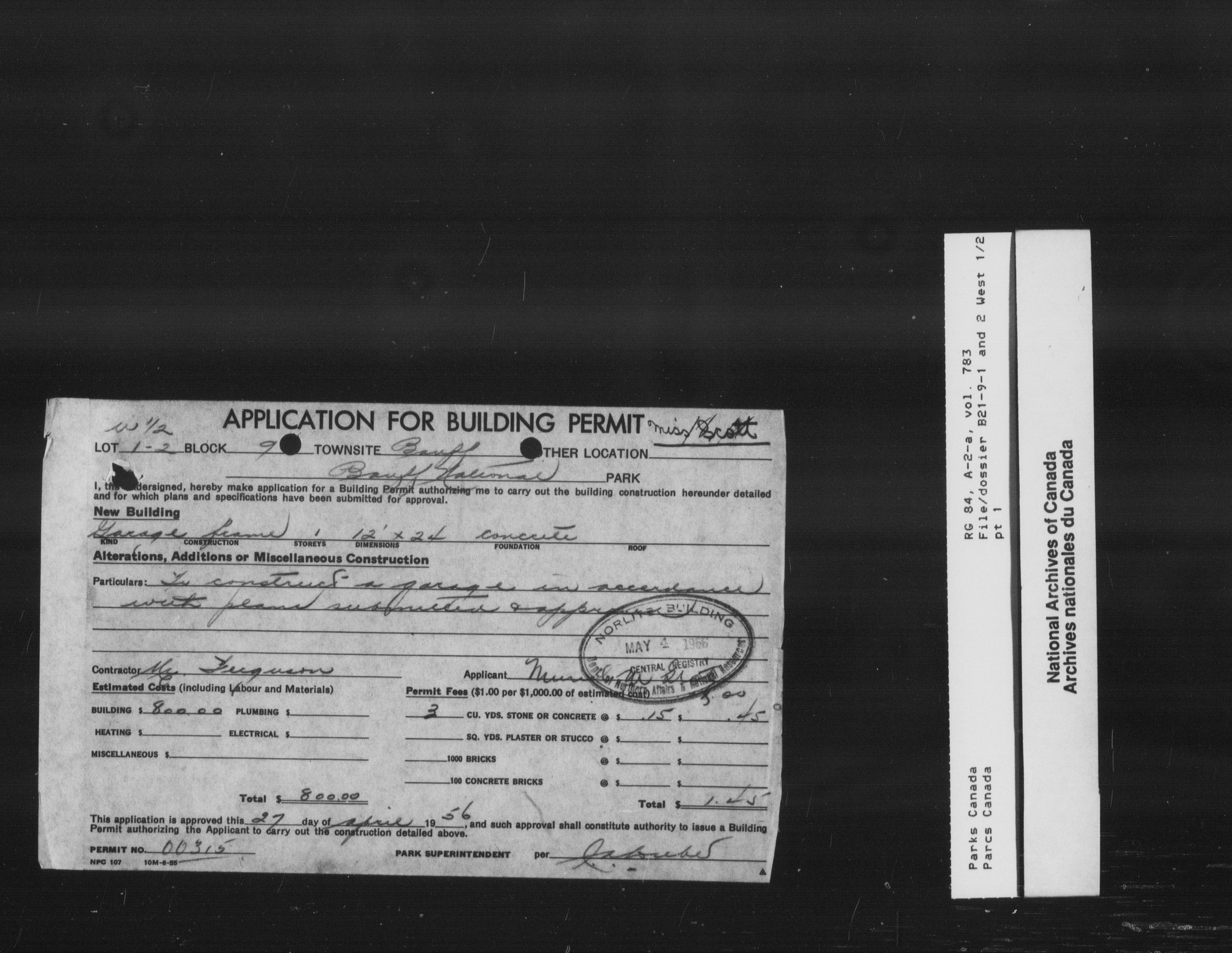 Department of Canadian Heritage, Canadian Parks Service : Park/subject classification system - 9507