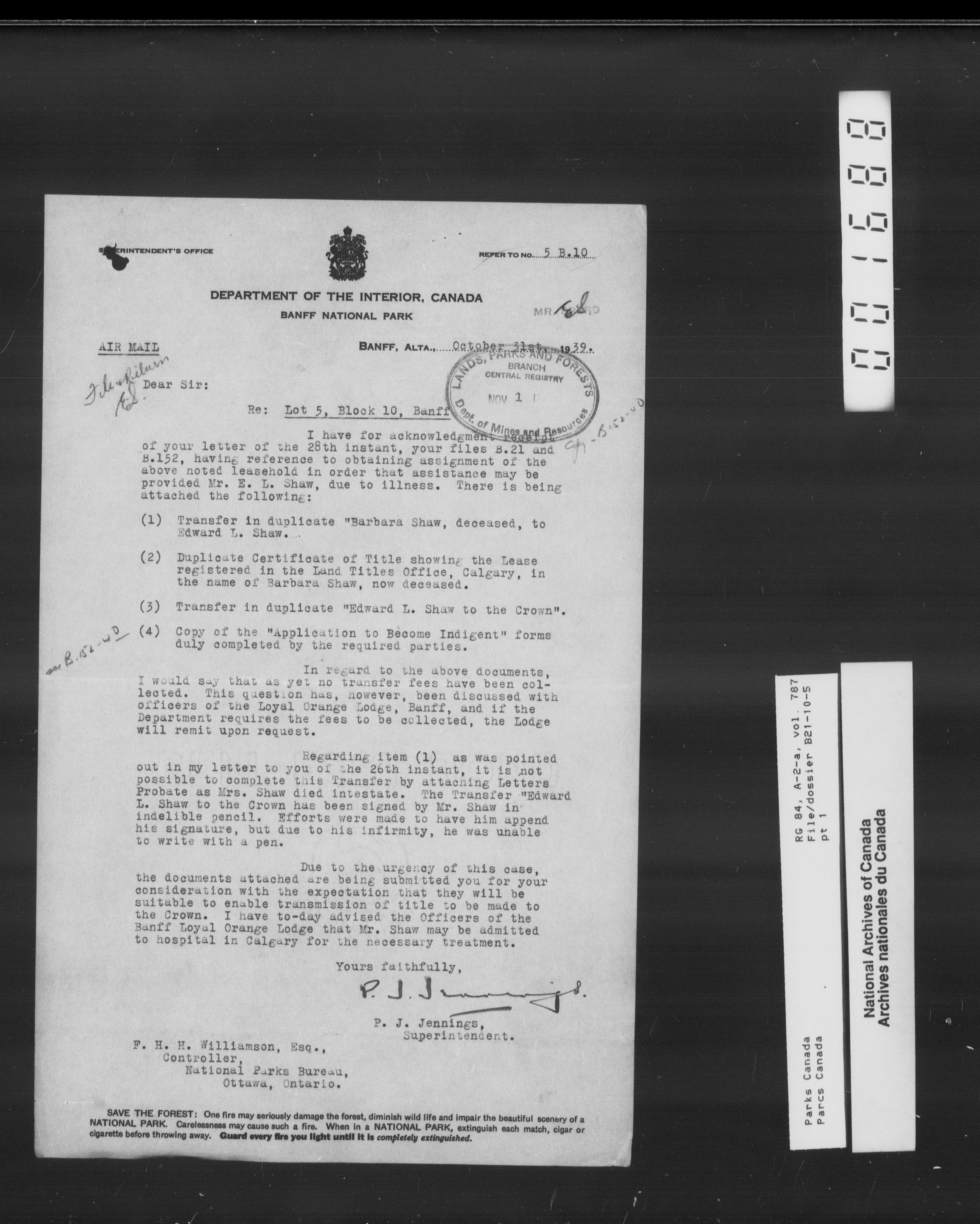 Department of Canadian Heritage, Canadian Parks Service : Park/subject classification system - 9509