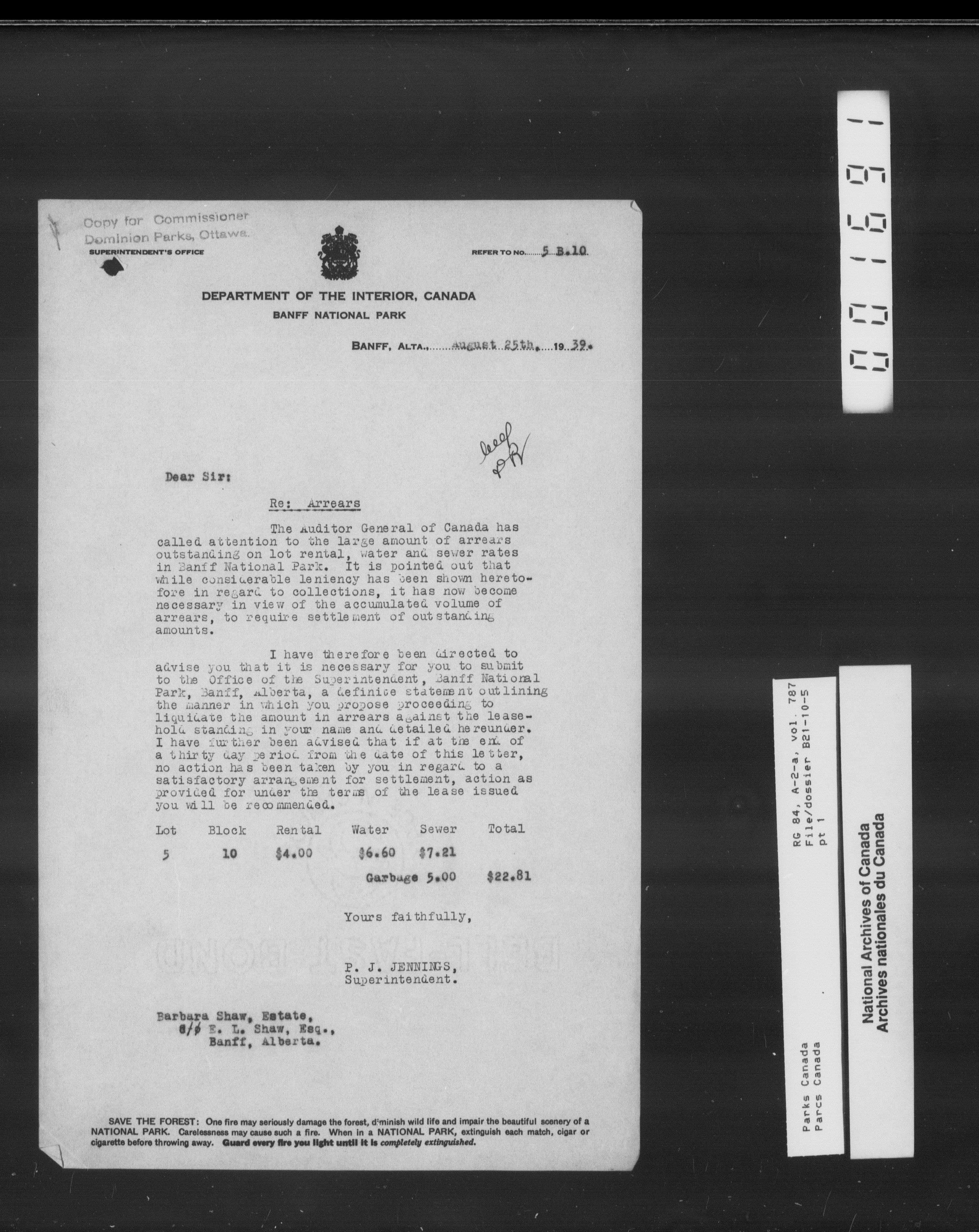 Department of Canadian Heritage, Canadian Parks Service : Park/subject classification system - 9509