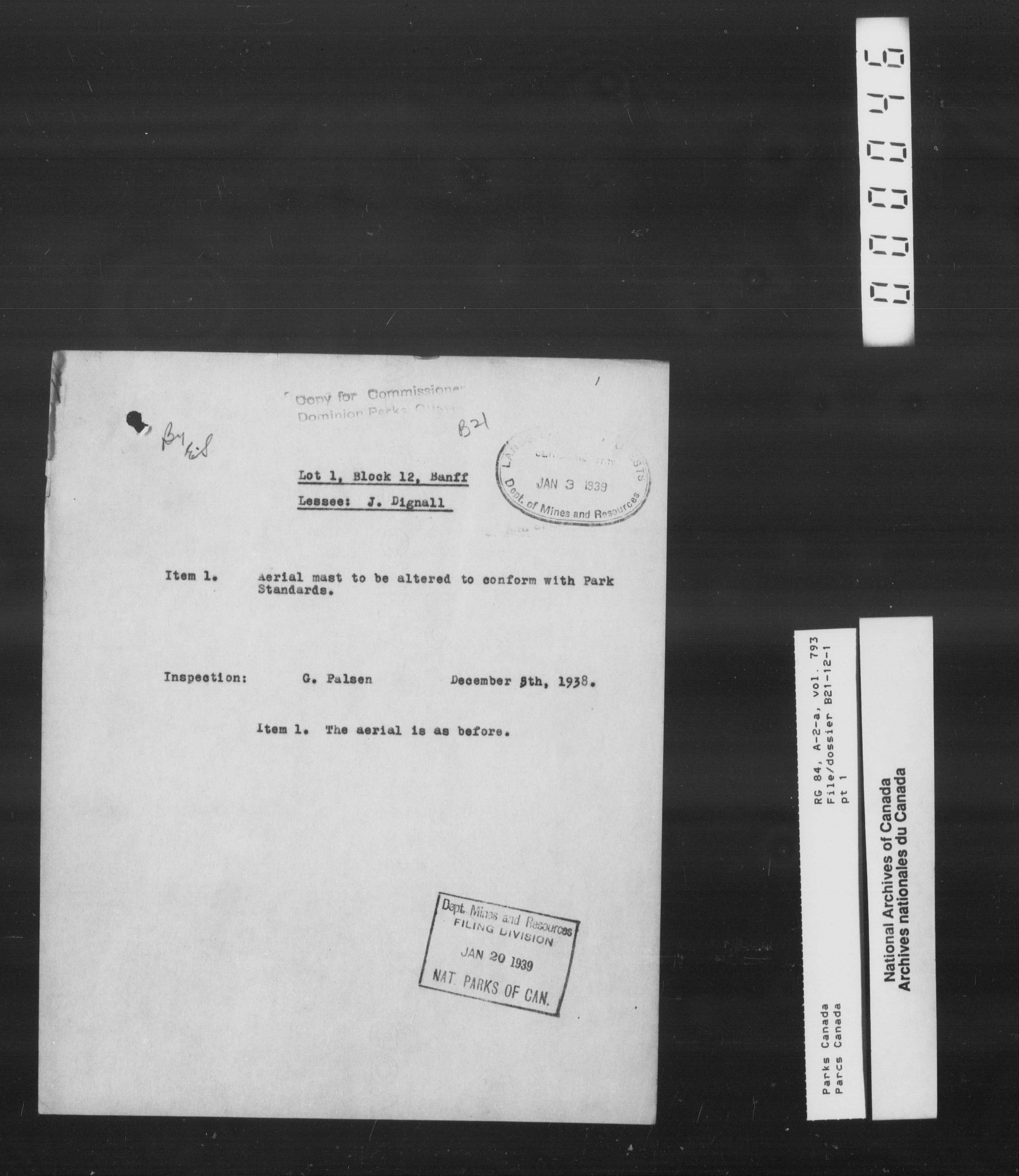 Department of Canadian Heritage, Canadian Parks Service : Park/subject classification system : T-9514