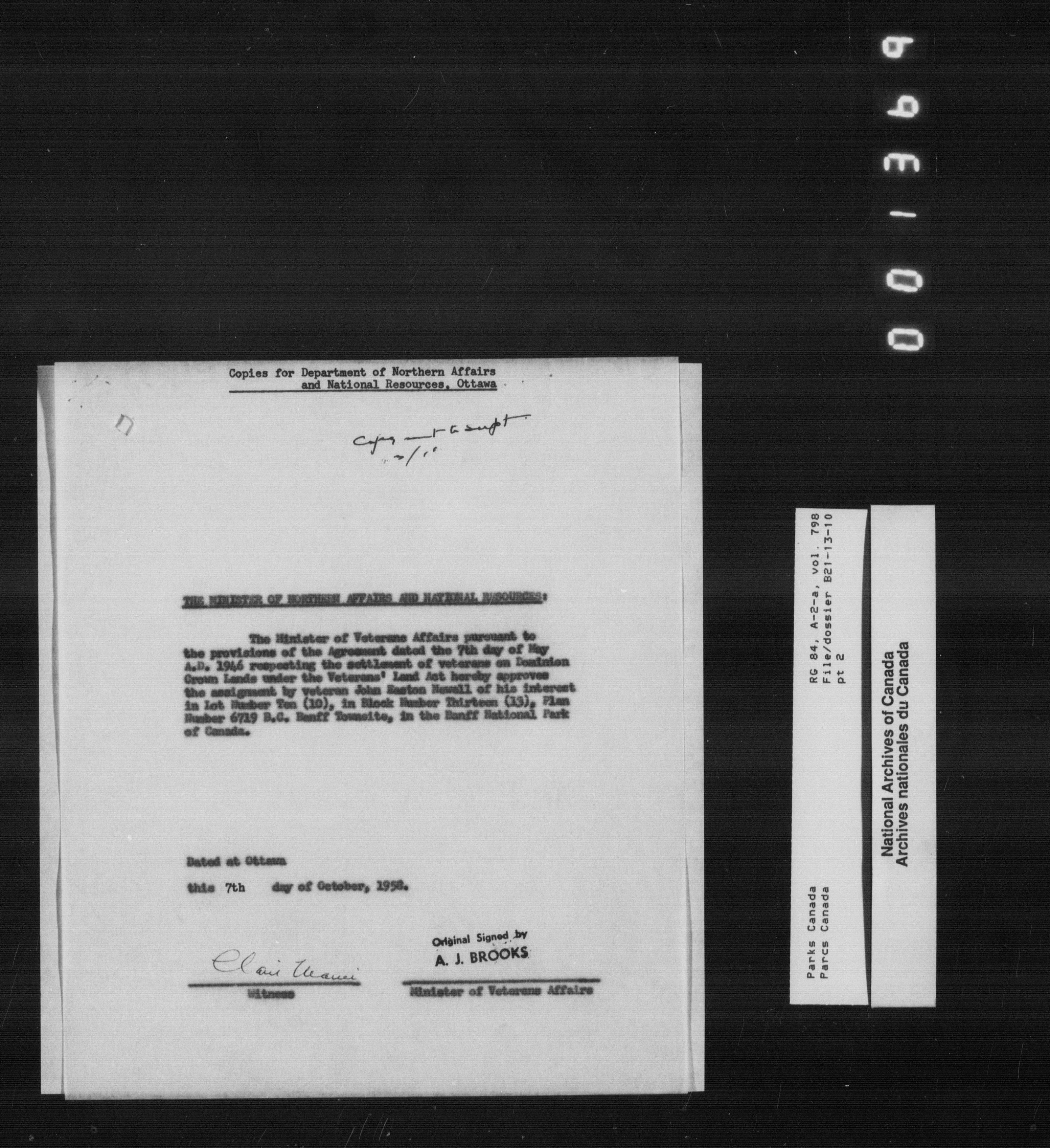 Department of Canadian Heritage, Canadian Parks Service : Park/subject classification system : T-9517