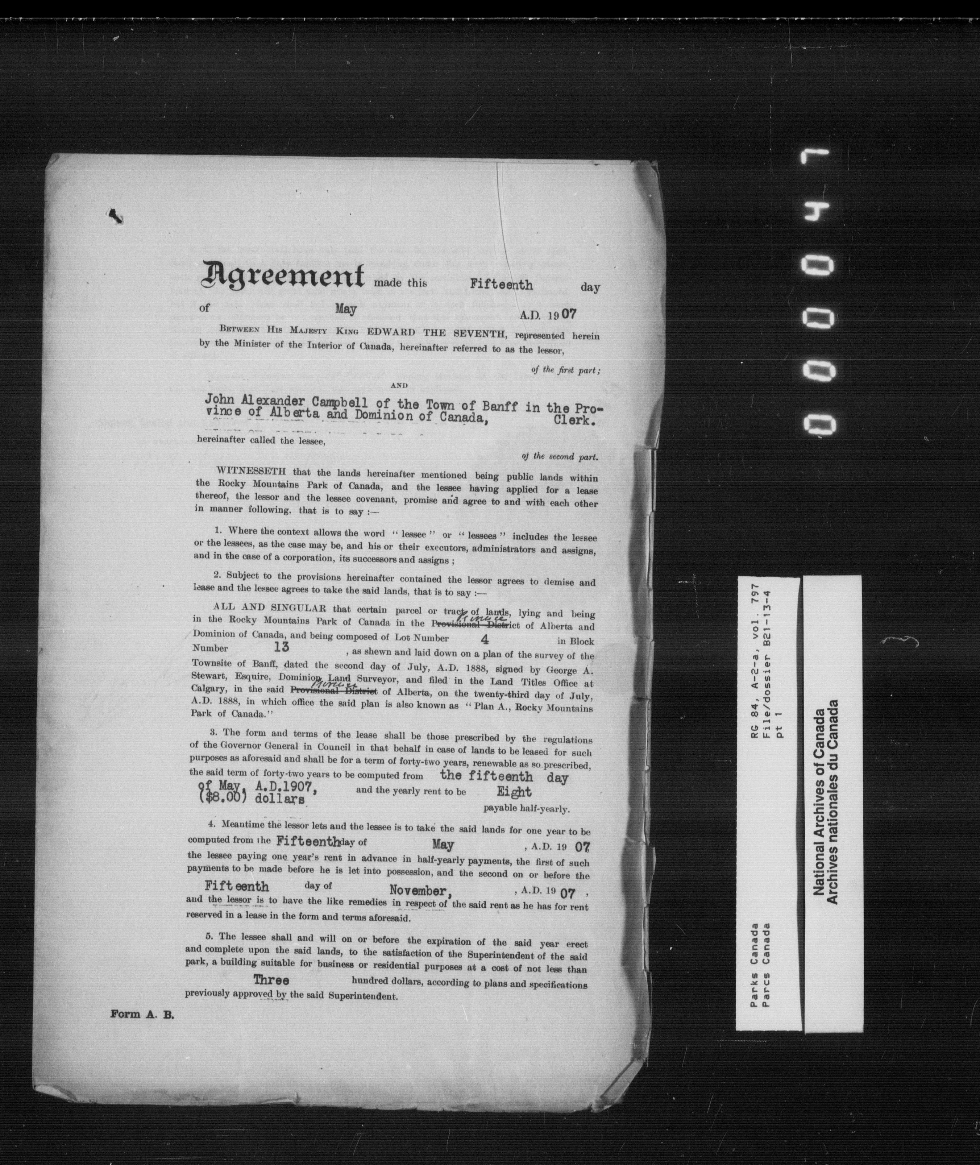 Department of Canadian Heritage, Canadian Parks Service : Park/subject classification system : T-9517