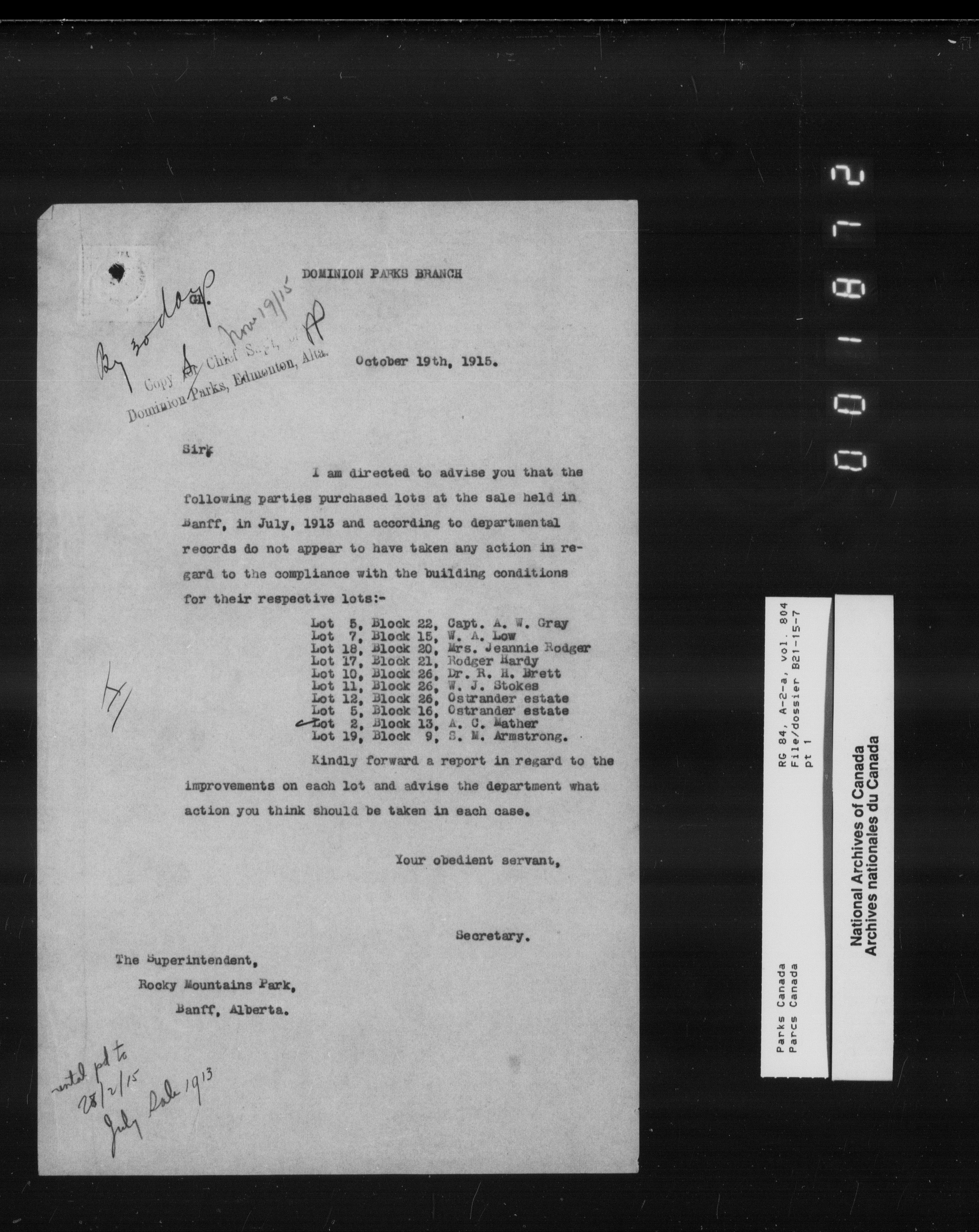 Department of Canadian Heritage, Canadian Parks Service : Park/subject classification system - 9521