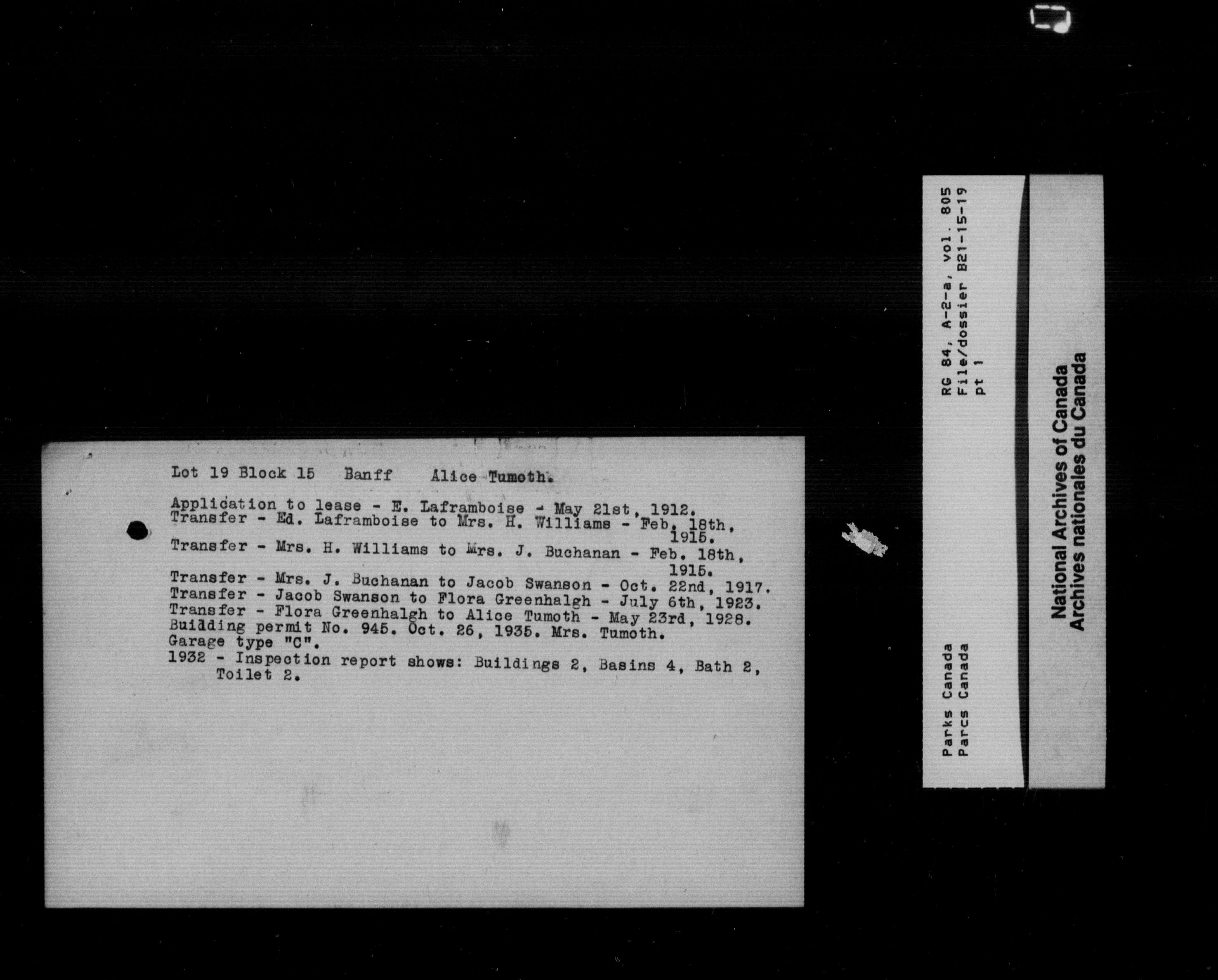 Department of Canadian Heritage, Canadian Parks Service : Park/subject classification system - 9523