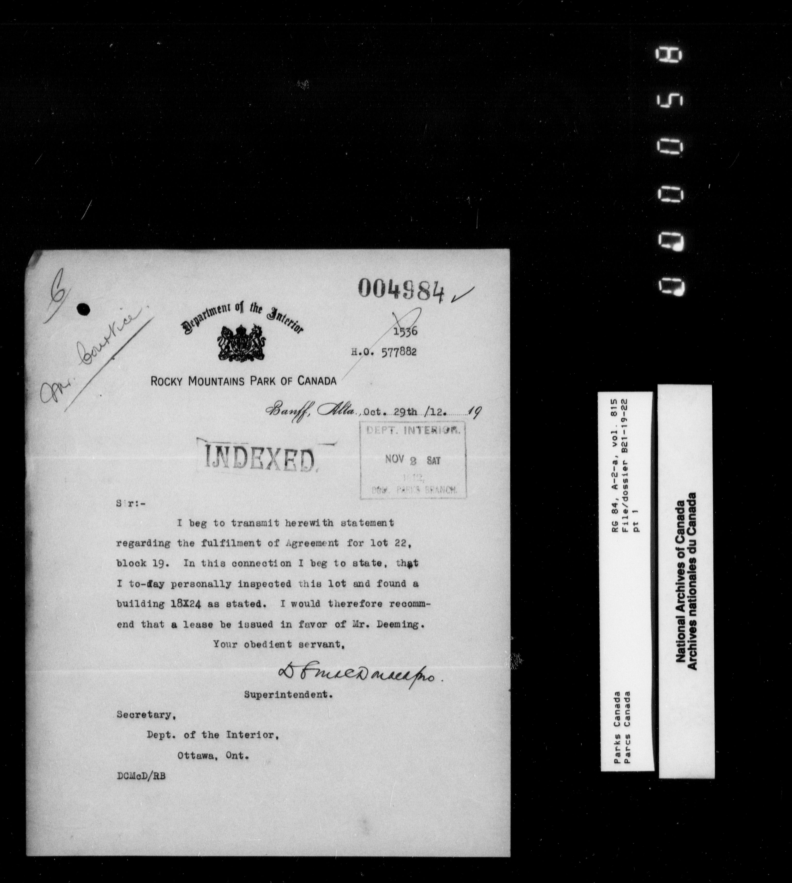 Department of Canadian Heritage, Canadian Parks Service : Park/subject classification system - 9530