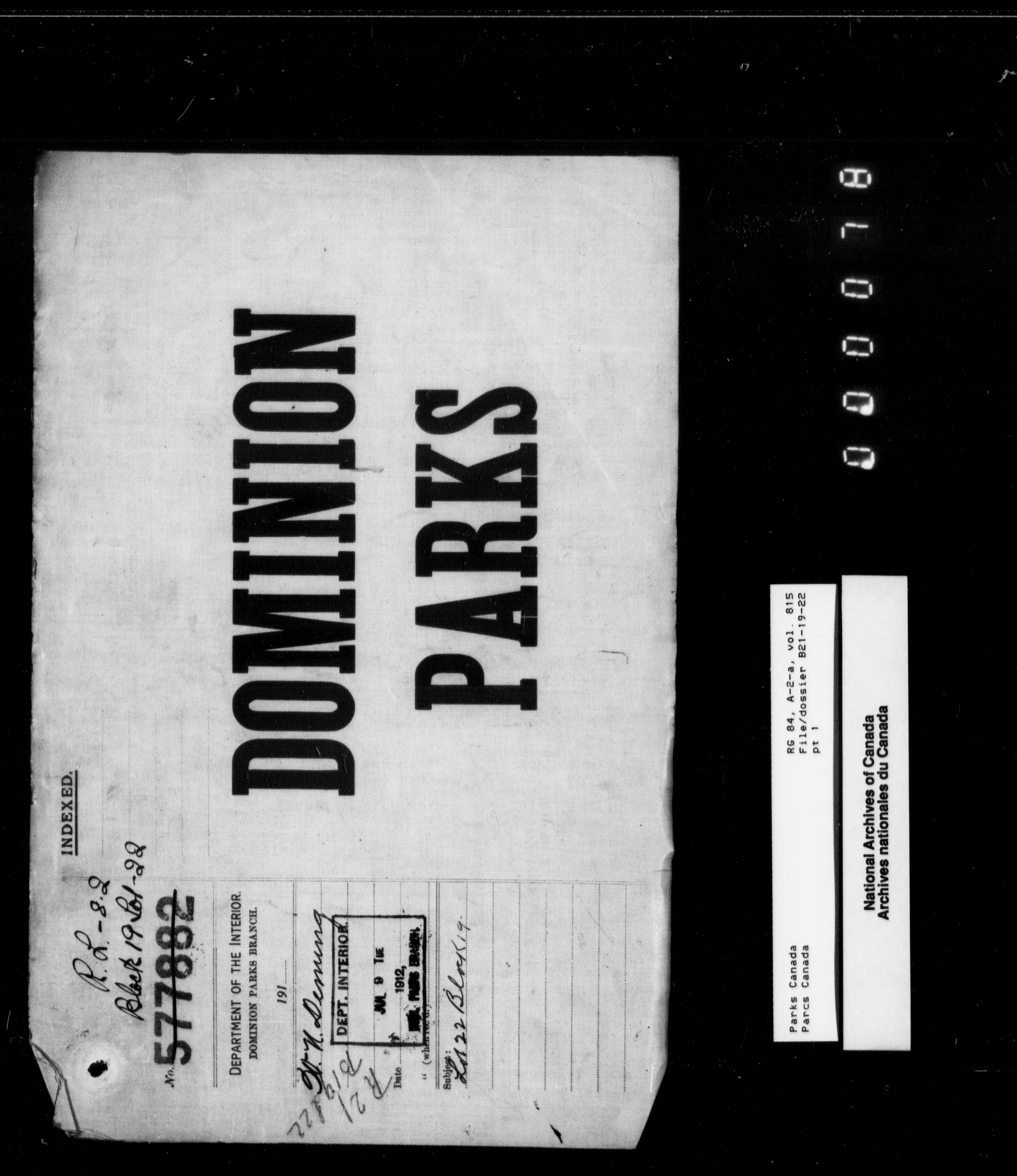 Department of Canadian Heritage, Canadian Parks Service : Park/subject classification system - 9530