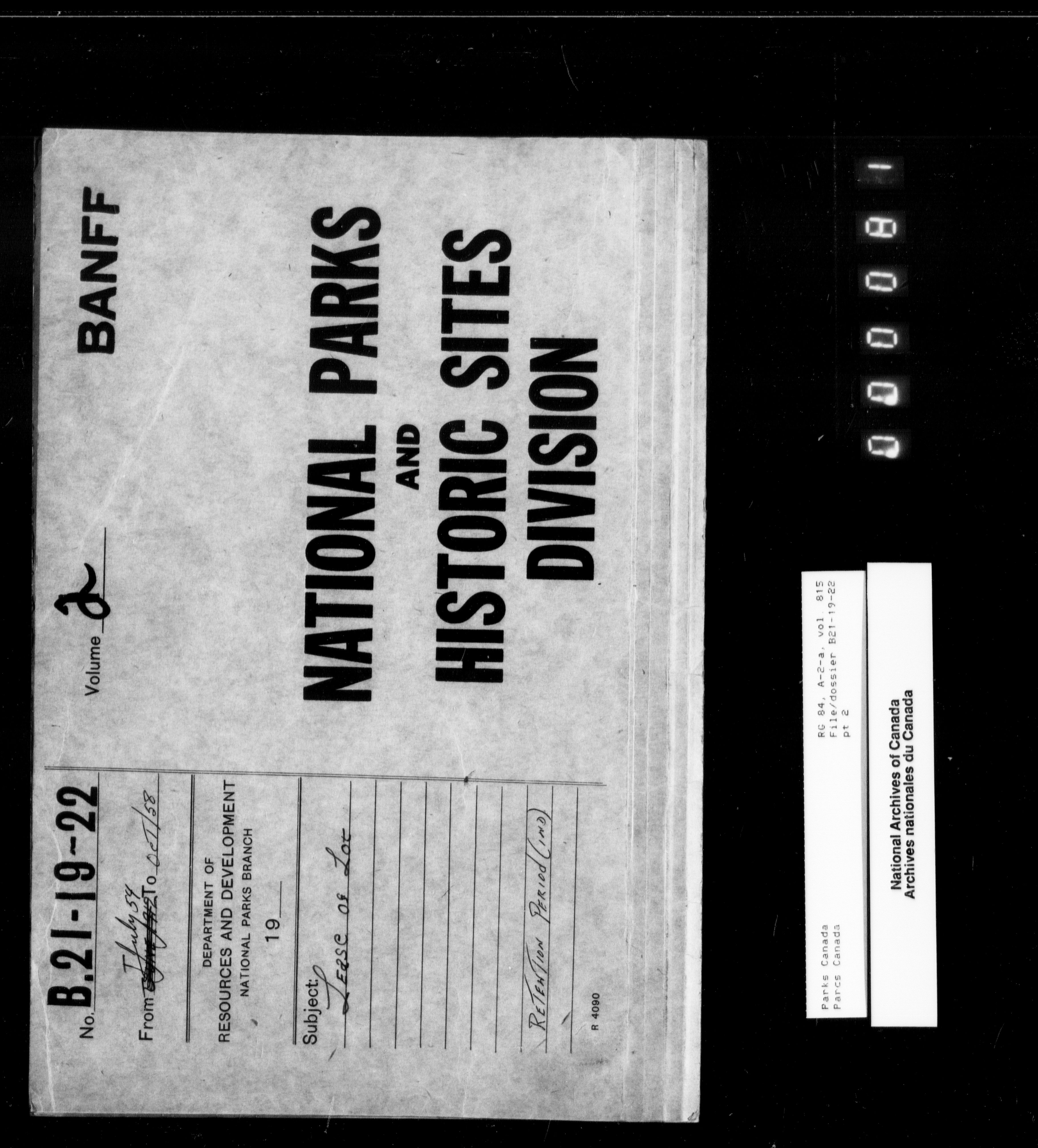 Department of Canadian Heritage, Canadian Parks Service : Park/subject classification system - 9530