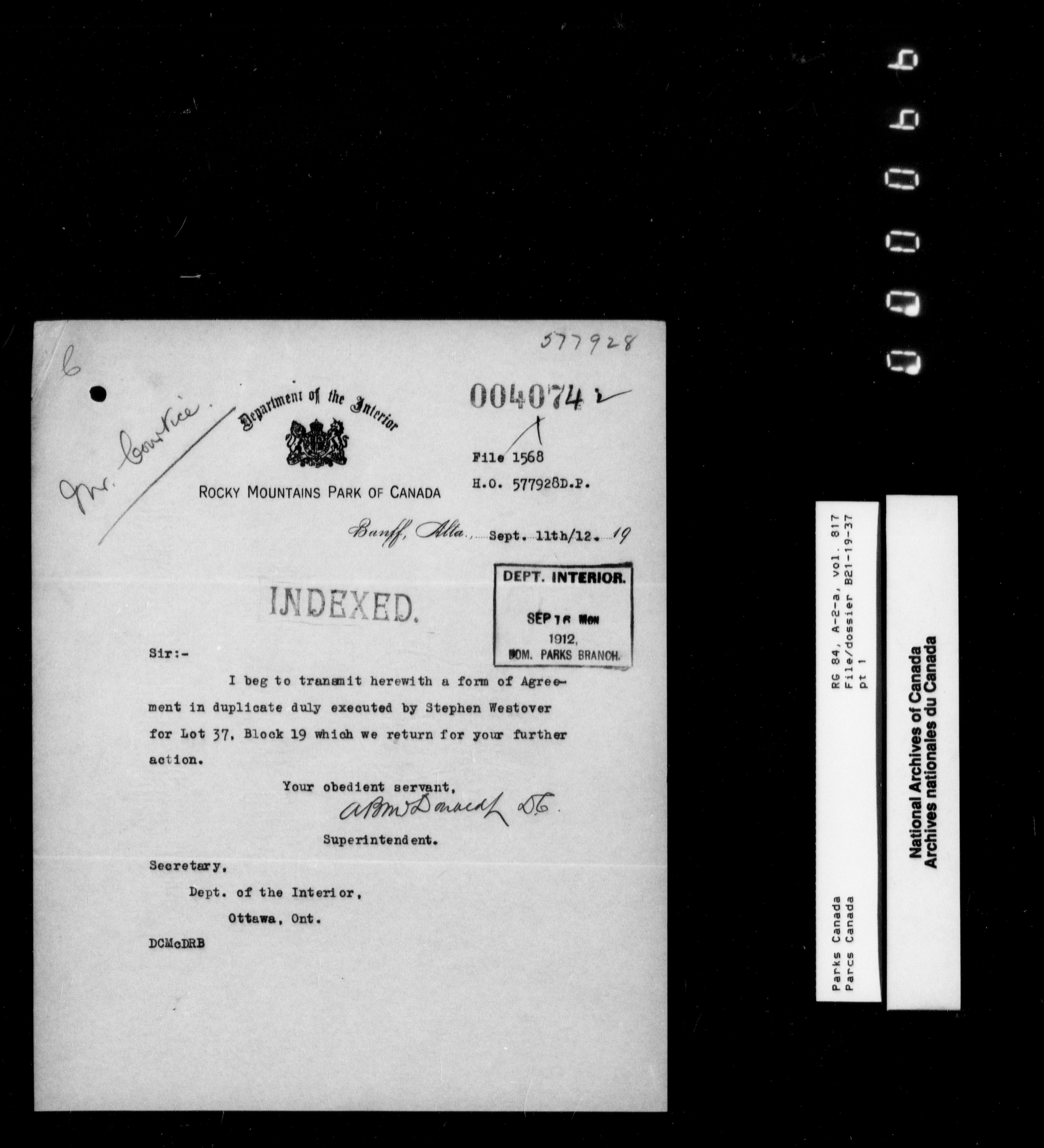 Department of Canadian Heritage, Canadian Parks Service : Park/subject classification system - 9531