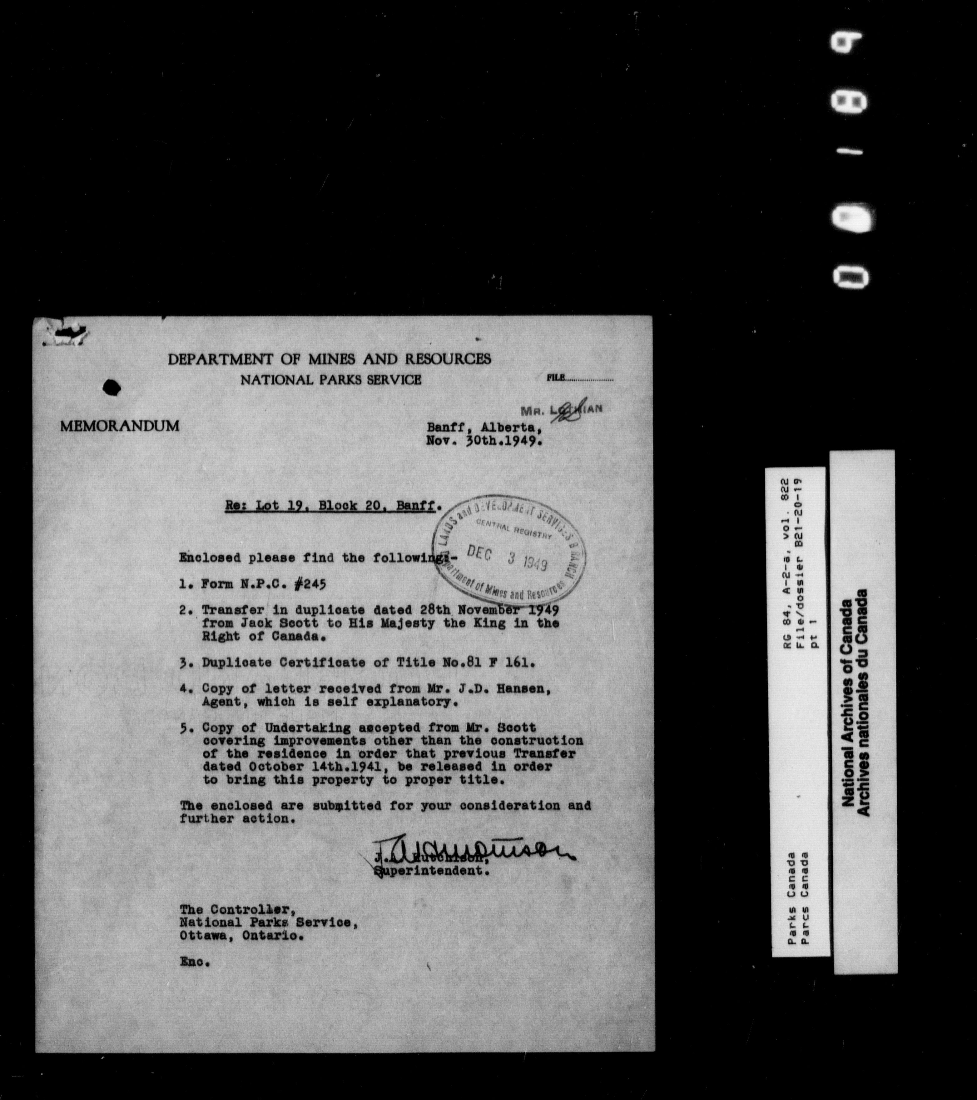 Department of Canadian Heritage, Canadian Parks Service : Park/subject classification system - 9534
