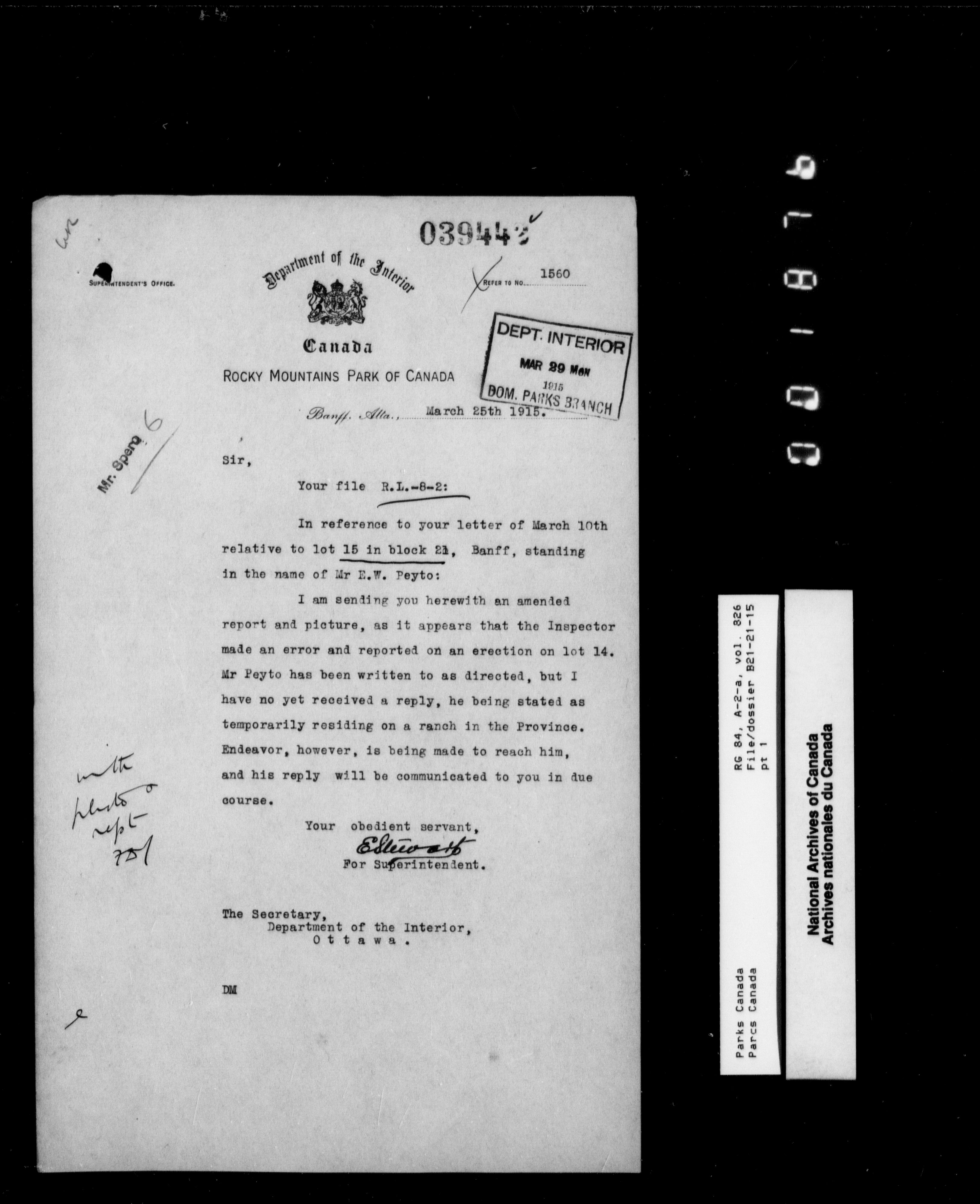 Department of Canadian Heritage, Canadian Parks Service : Park/subject classification system - 9536