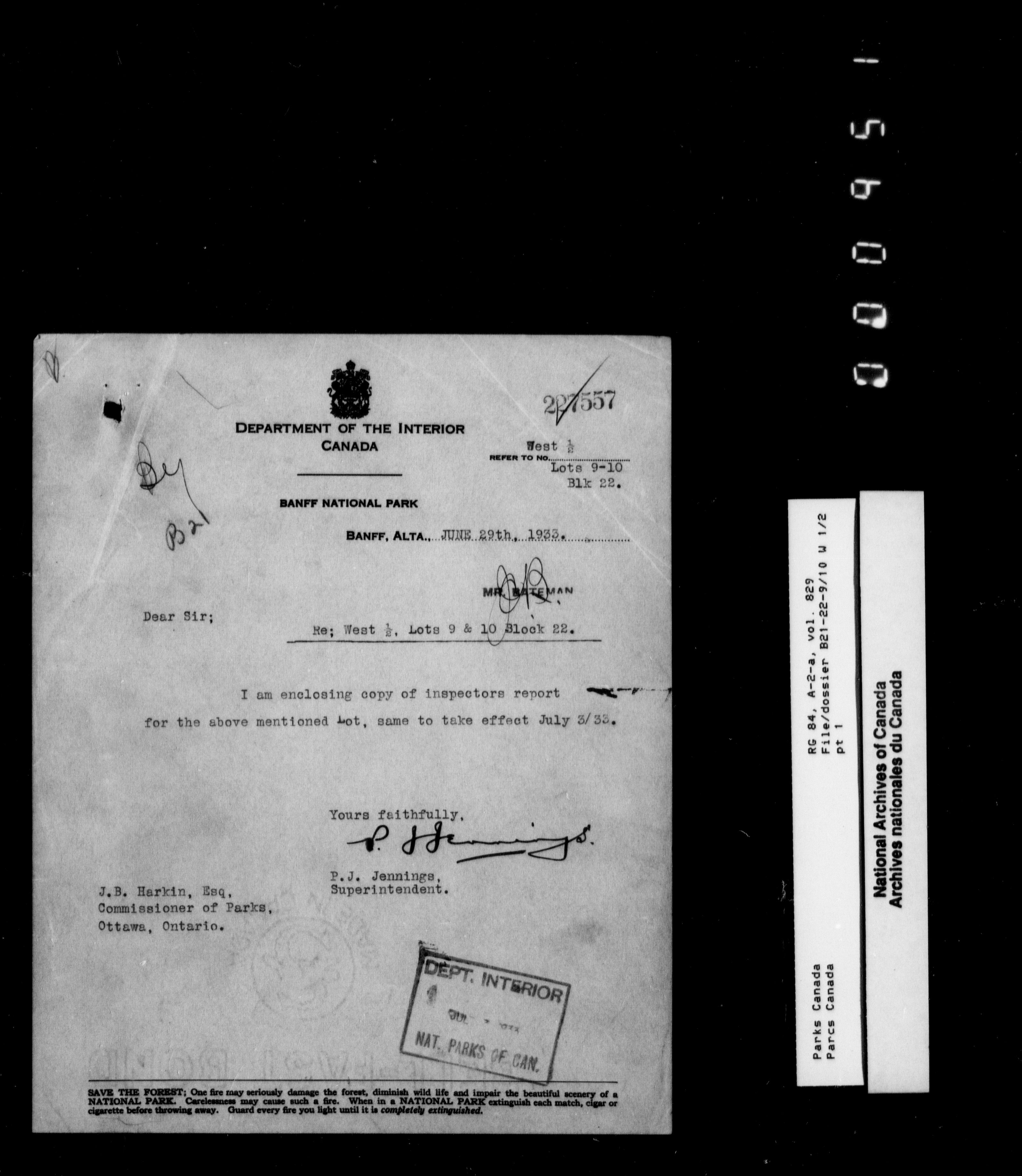 Department of Canadian Heritage, Canadian Parks Service : Park/subject classification system - 9539