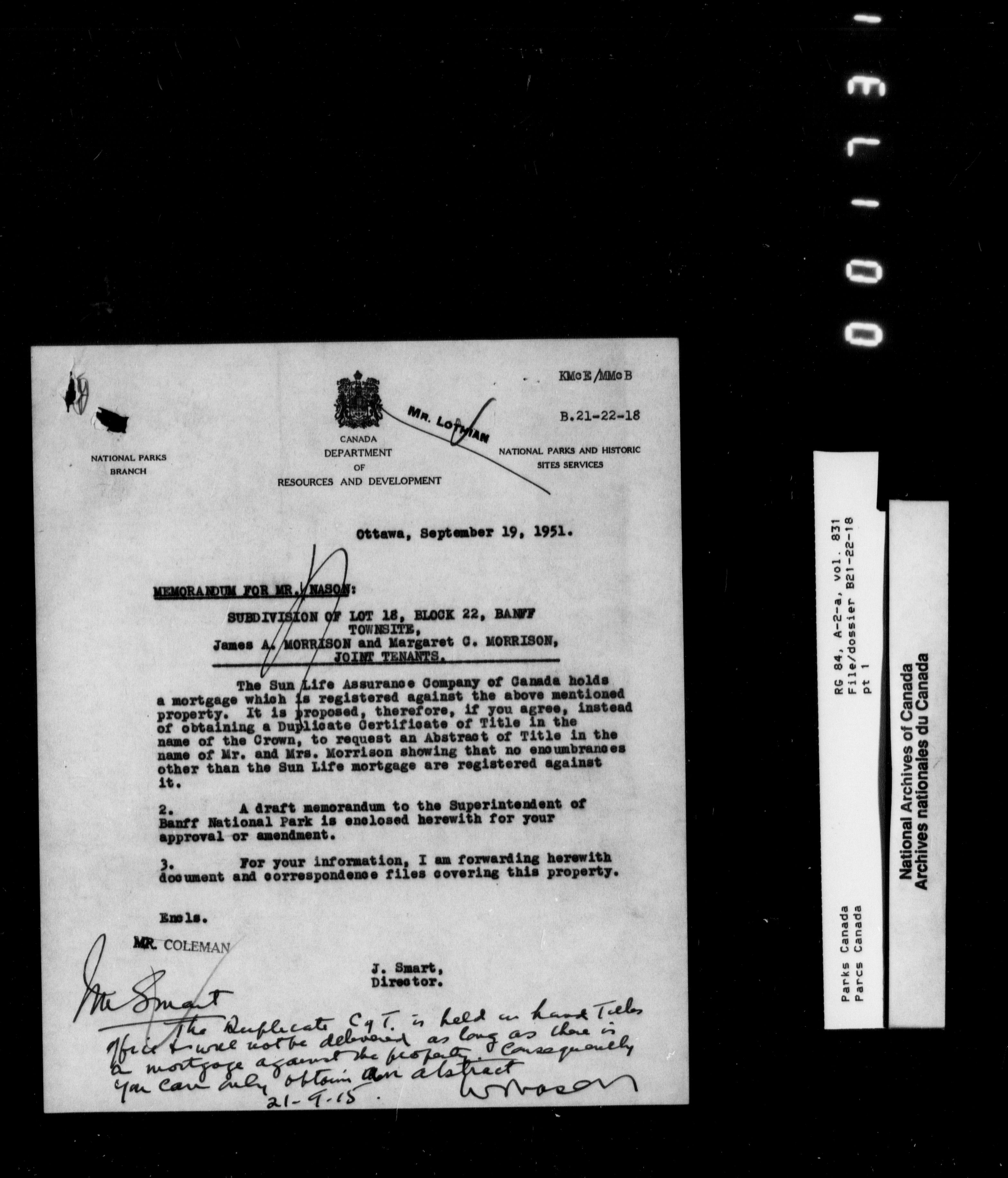 Department of Canadian Heritage, Canadian Parks Service : Park/subject classification system - 9540