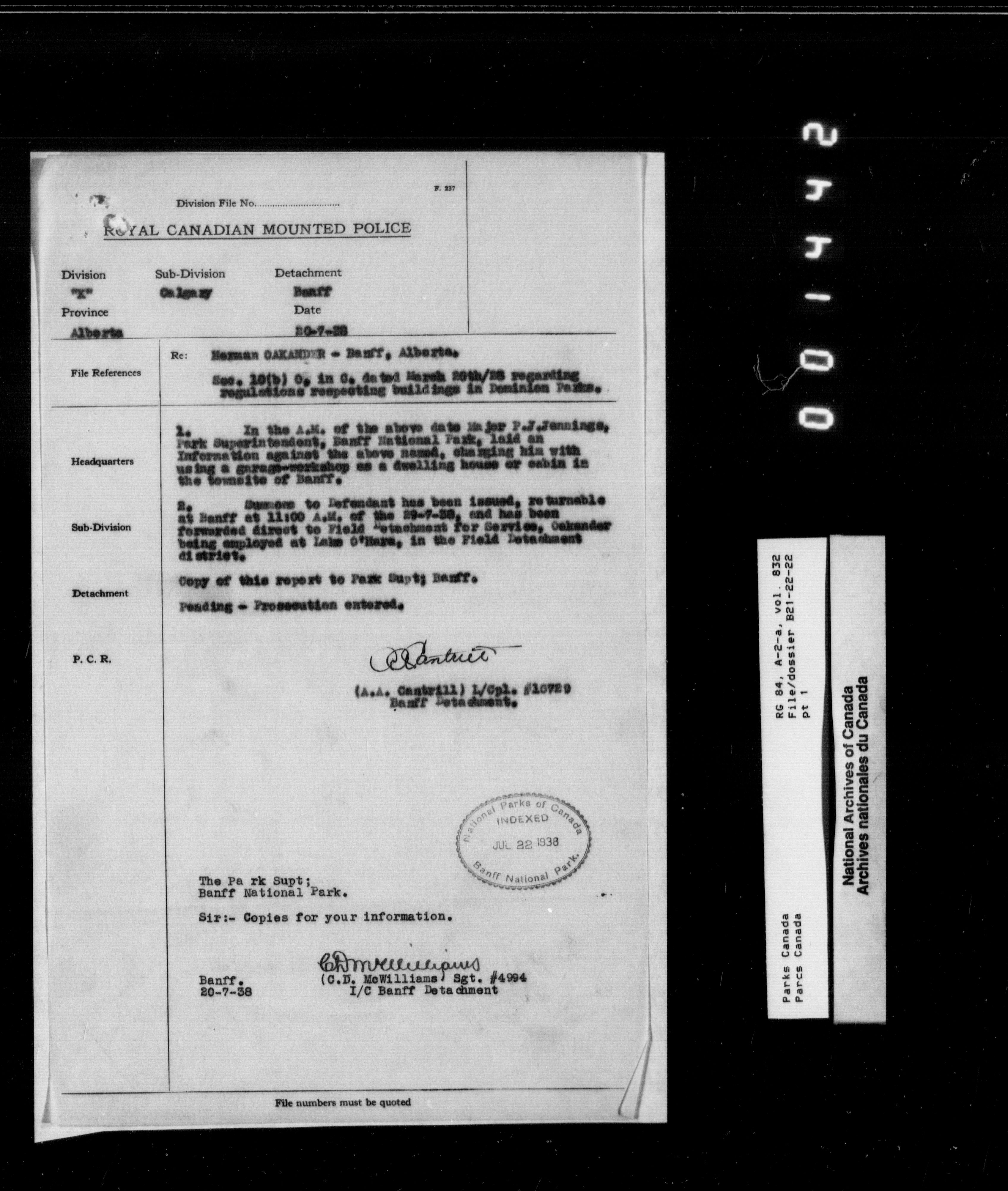 Department of Canadian Heritage, Canadian Parks Service : Park/subject classification system - 9541