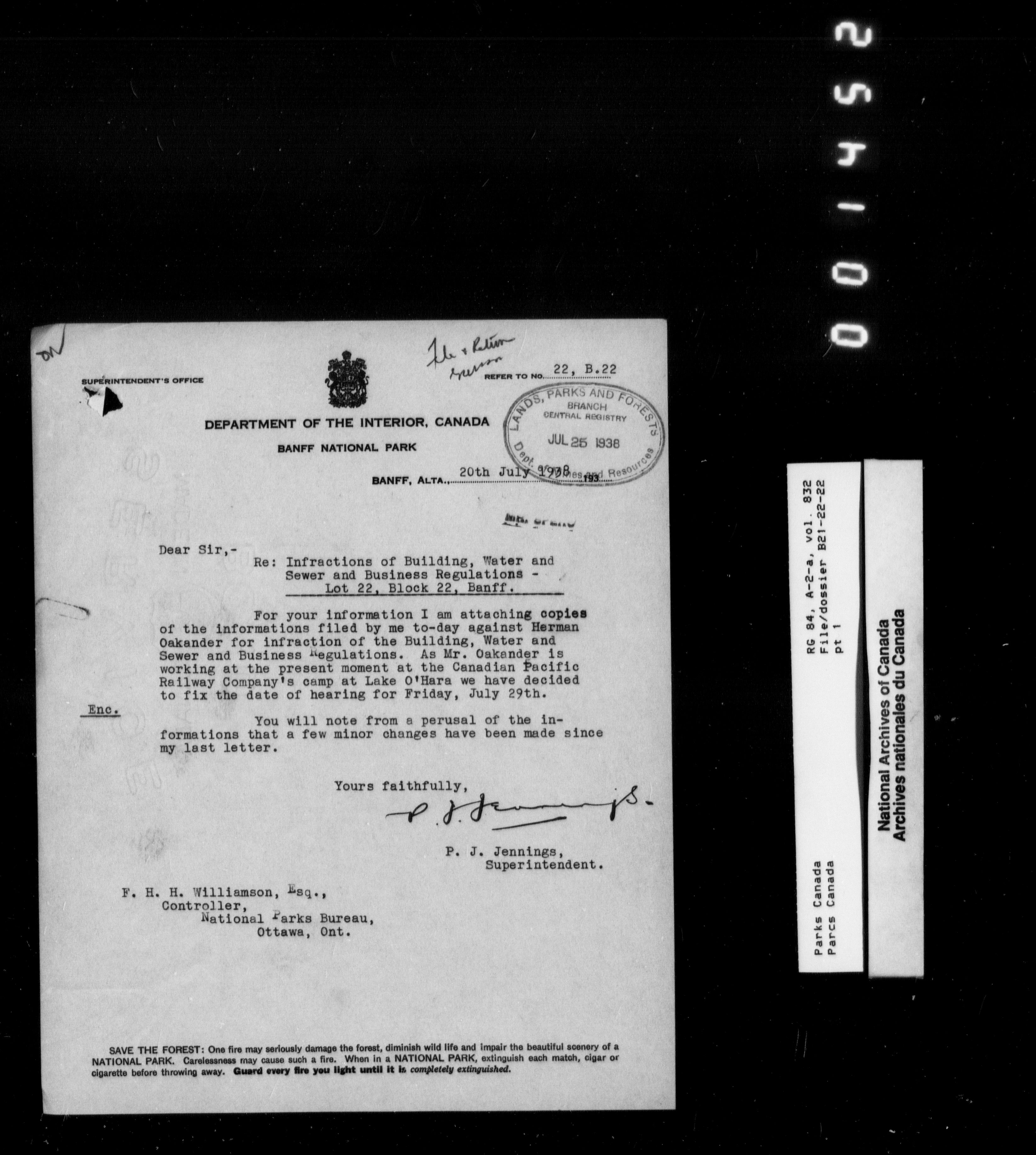 Department of Canadian Heritage, Canadian Parks Service : Park/subject classification system - 9541