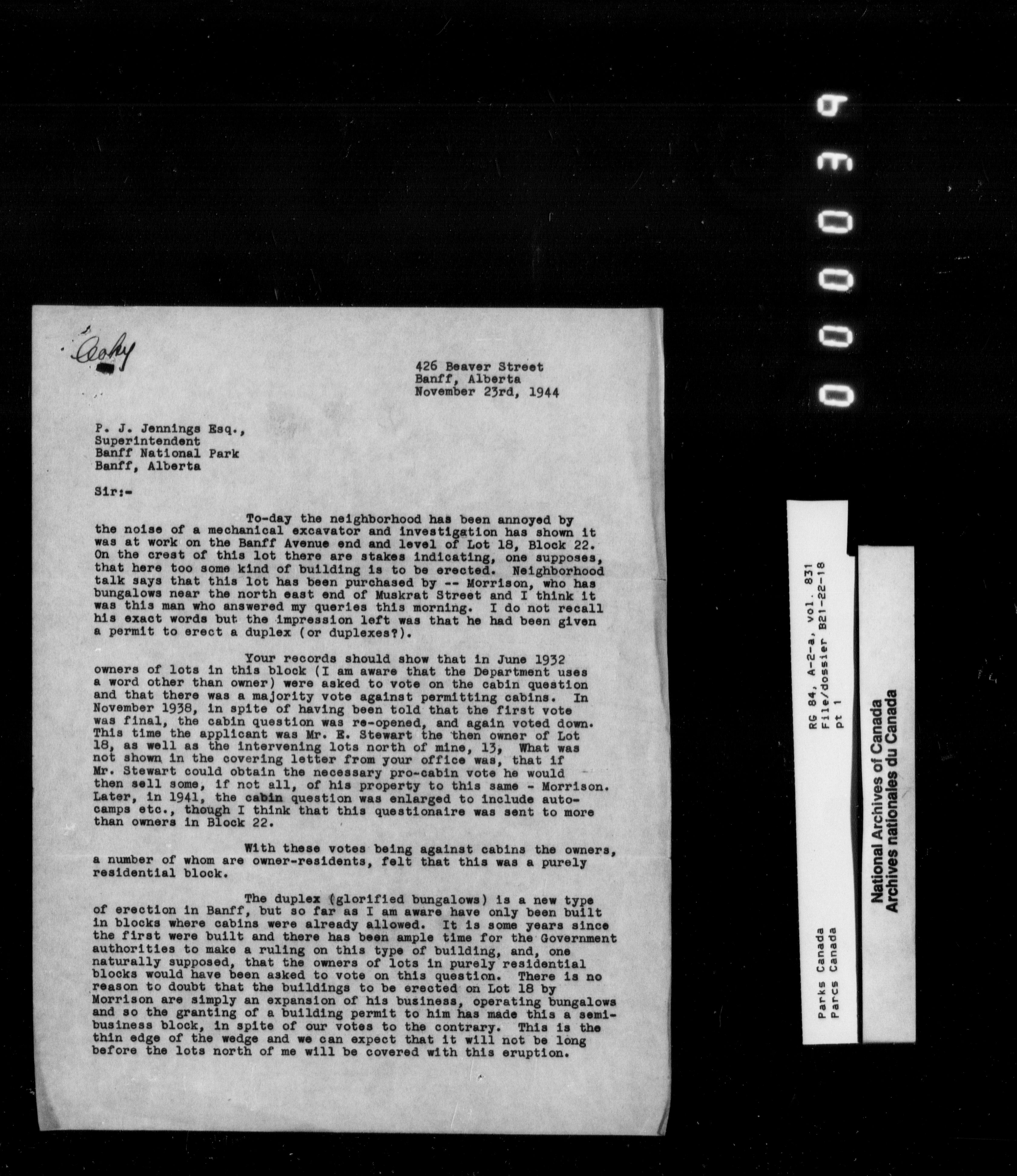 Department of Canadian Heritage, Canadian Parks Service : Park/subject classification system - 9541