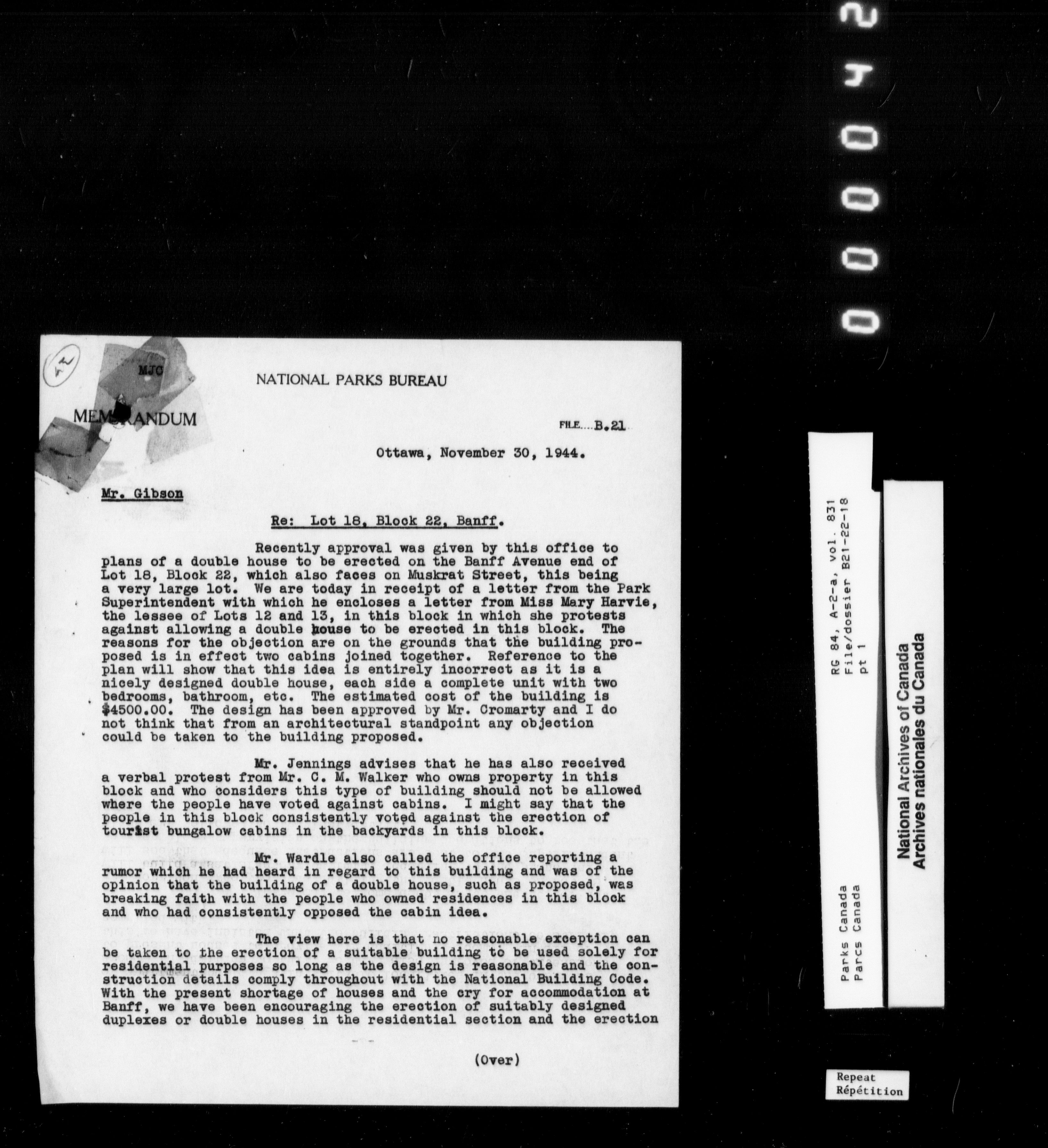 Department of Canadian Heritage, Canadian Parks Service : Park/subject classification system - 9541