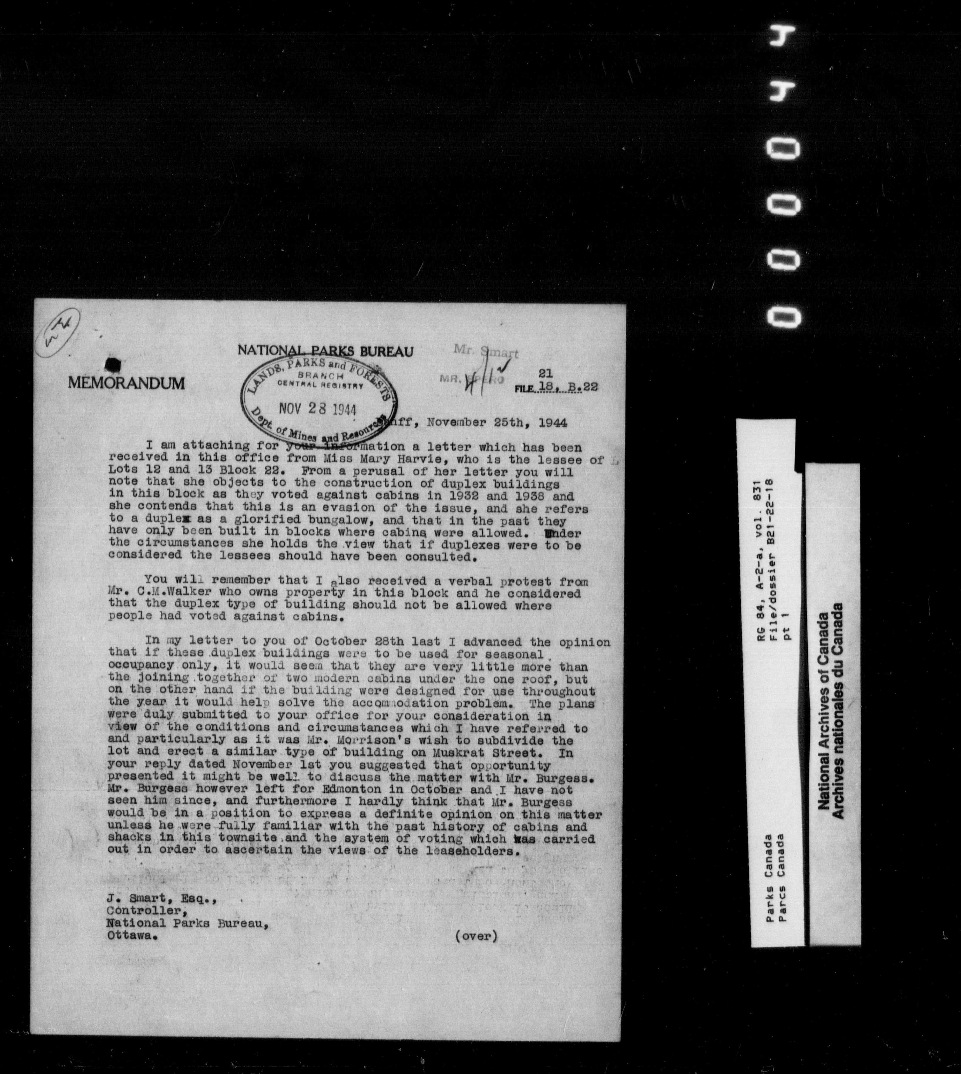 Department of Canadian Heritage, Canadian Parks Service : Park/subject classification system - 9541
