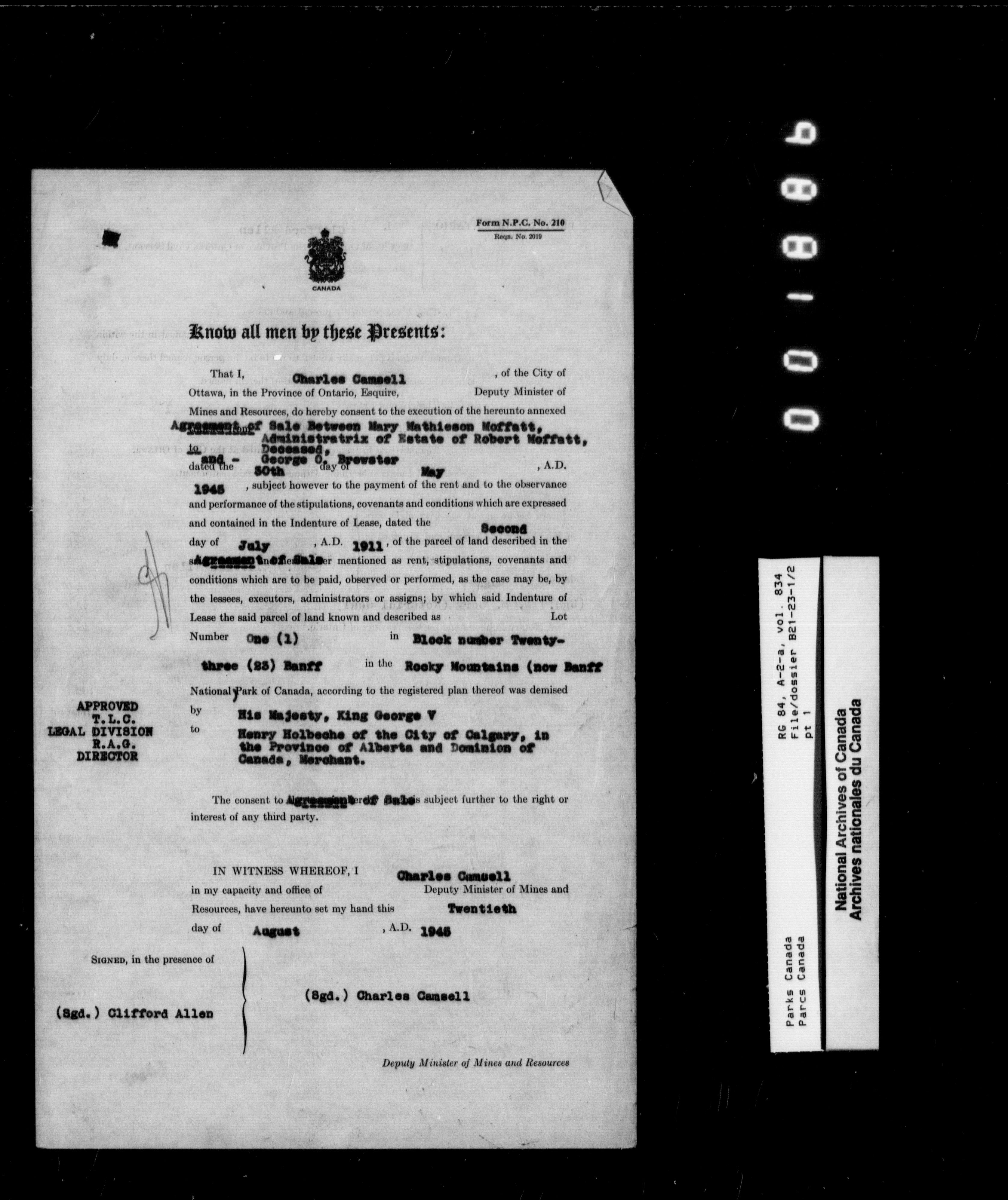 Department of Canadian Heritage, Canadian Parks Service : Park/subject classification system : T-9542