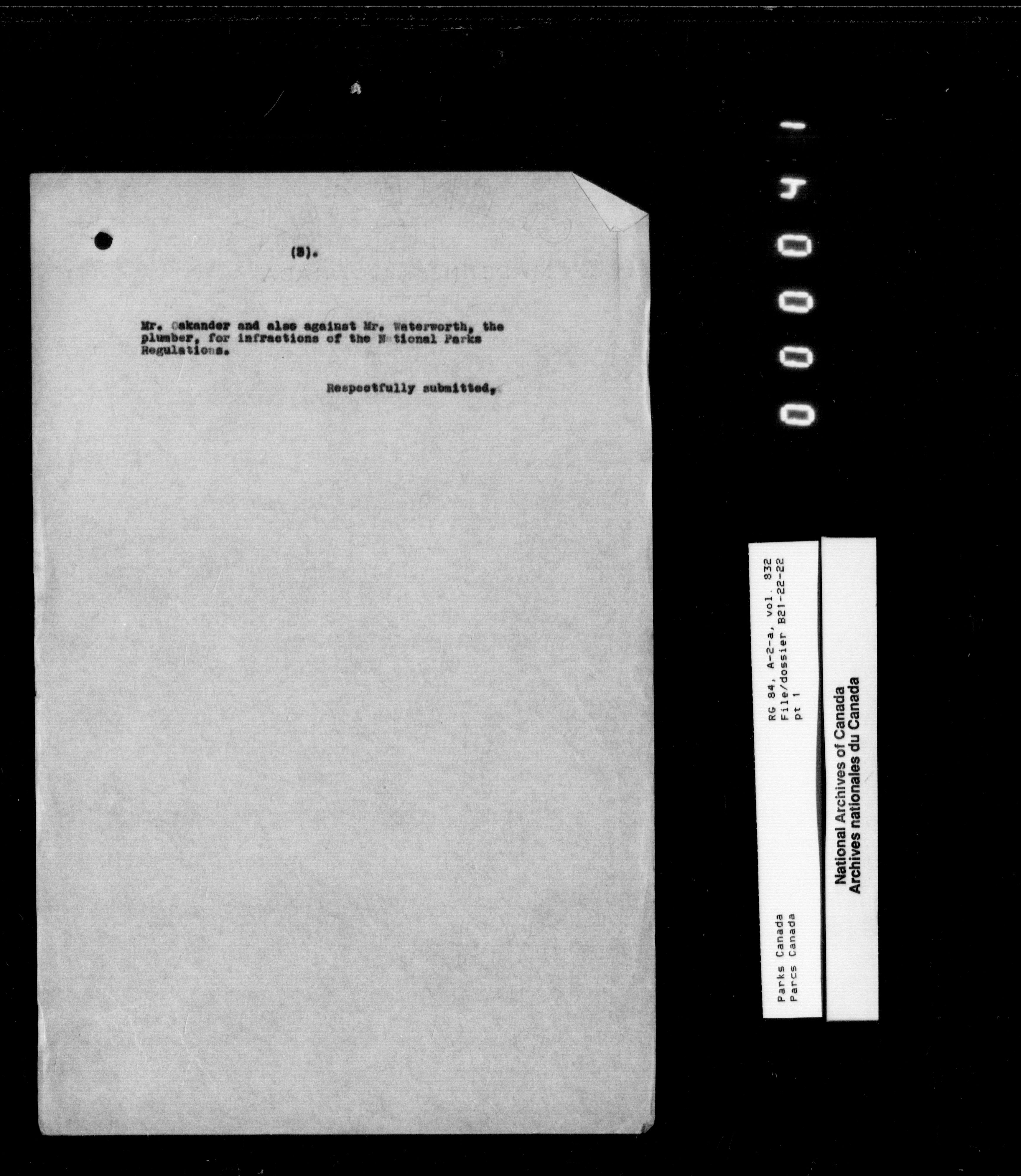 Department of Canadian Heritage, Canadian Parks Service : Park/subject classification system - 9542