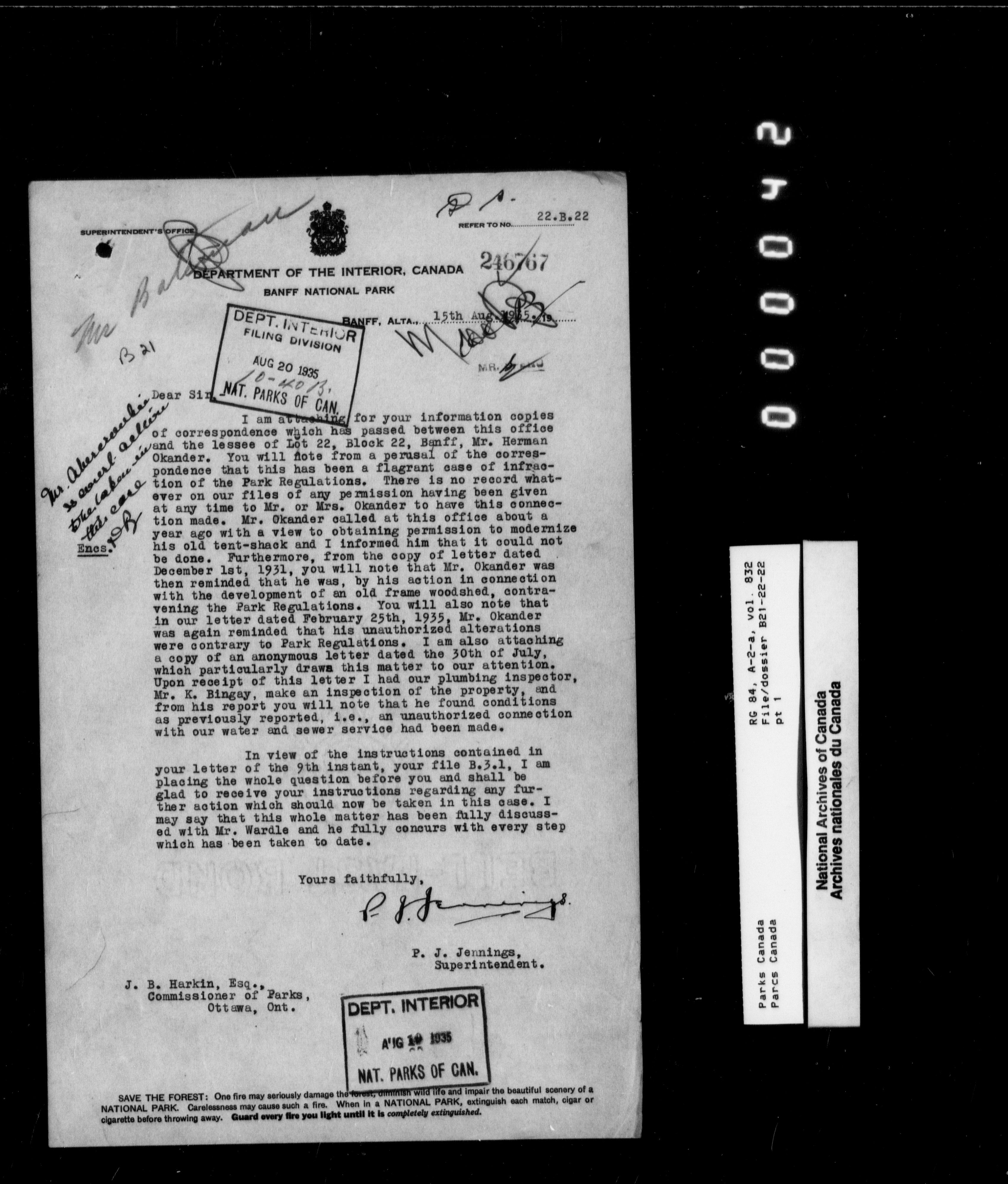 Department of Canadian Heritage, Canadian Parks Service : Park/subject classification system - 9542