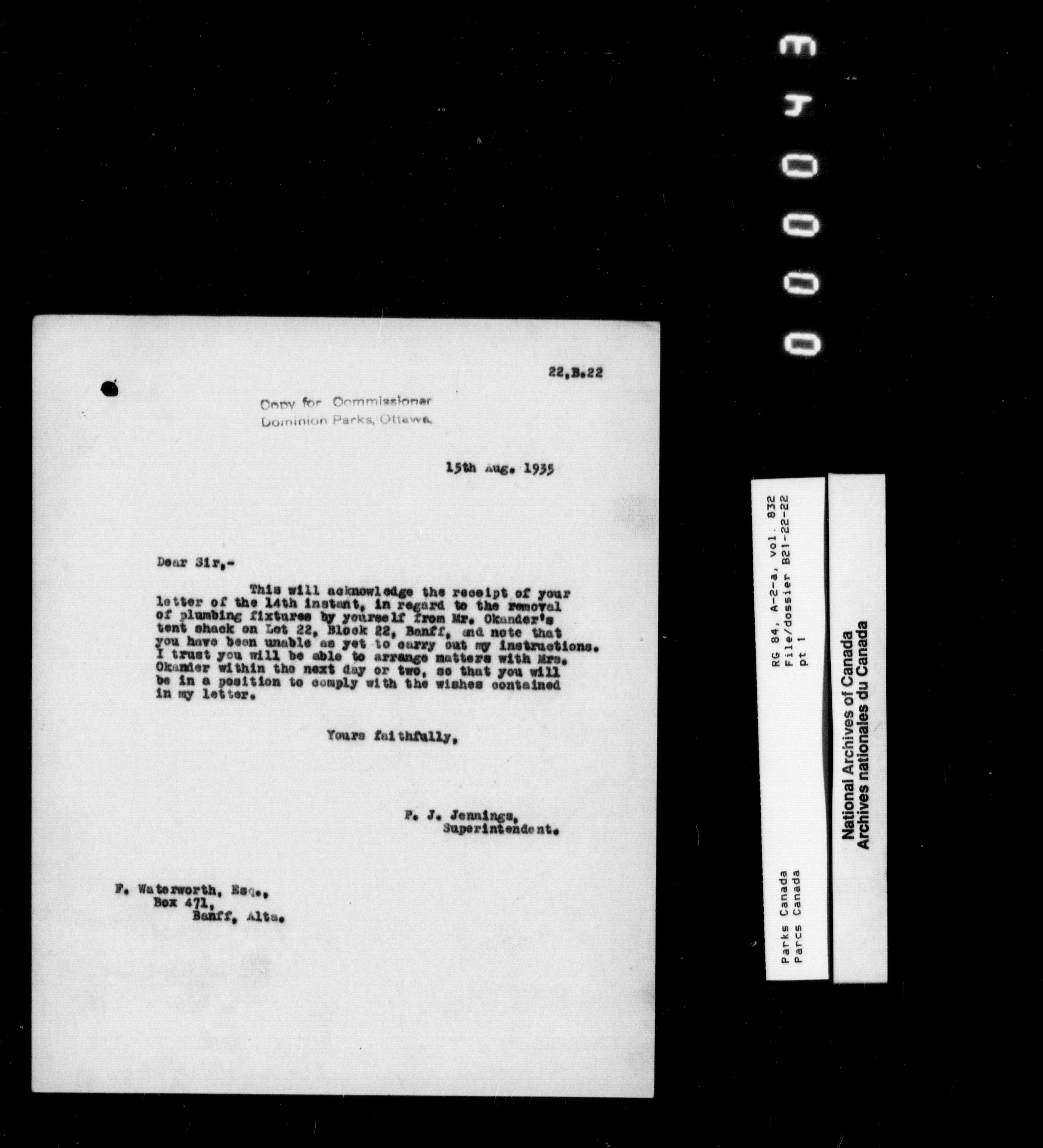 Department of Canadian Heritage, Canadian Parks Service : Park/subject classification system - 9542