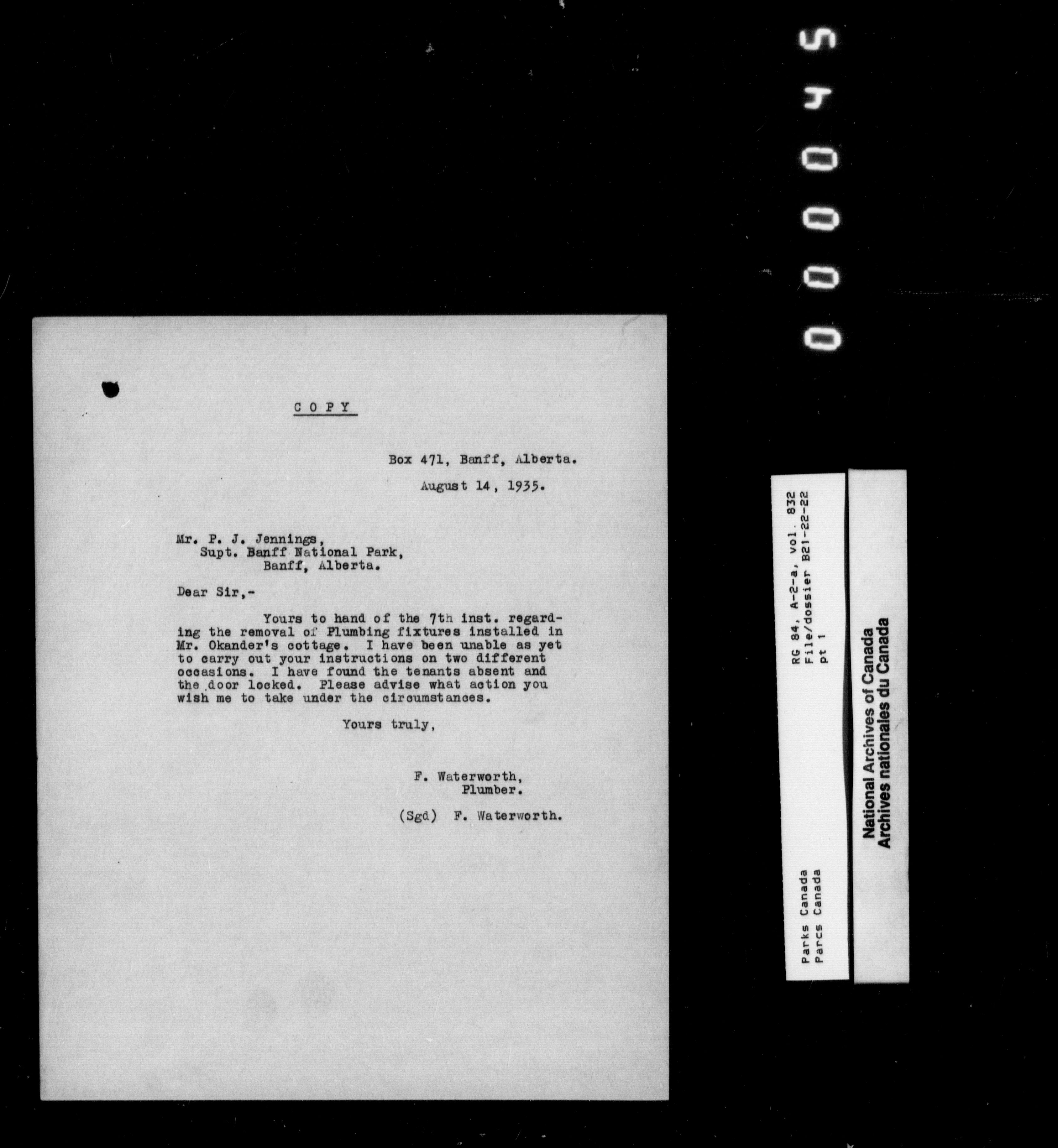 Department of Canadian Heritage, Canadian Parks Service : Park/subject classification system - 9542