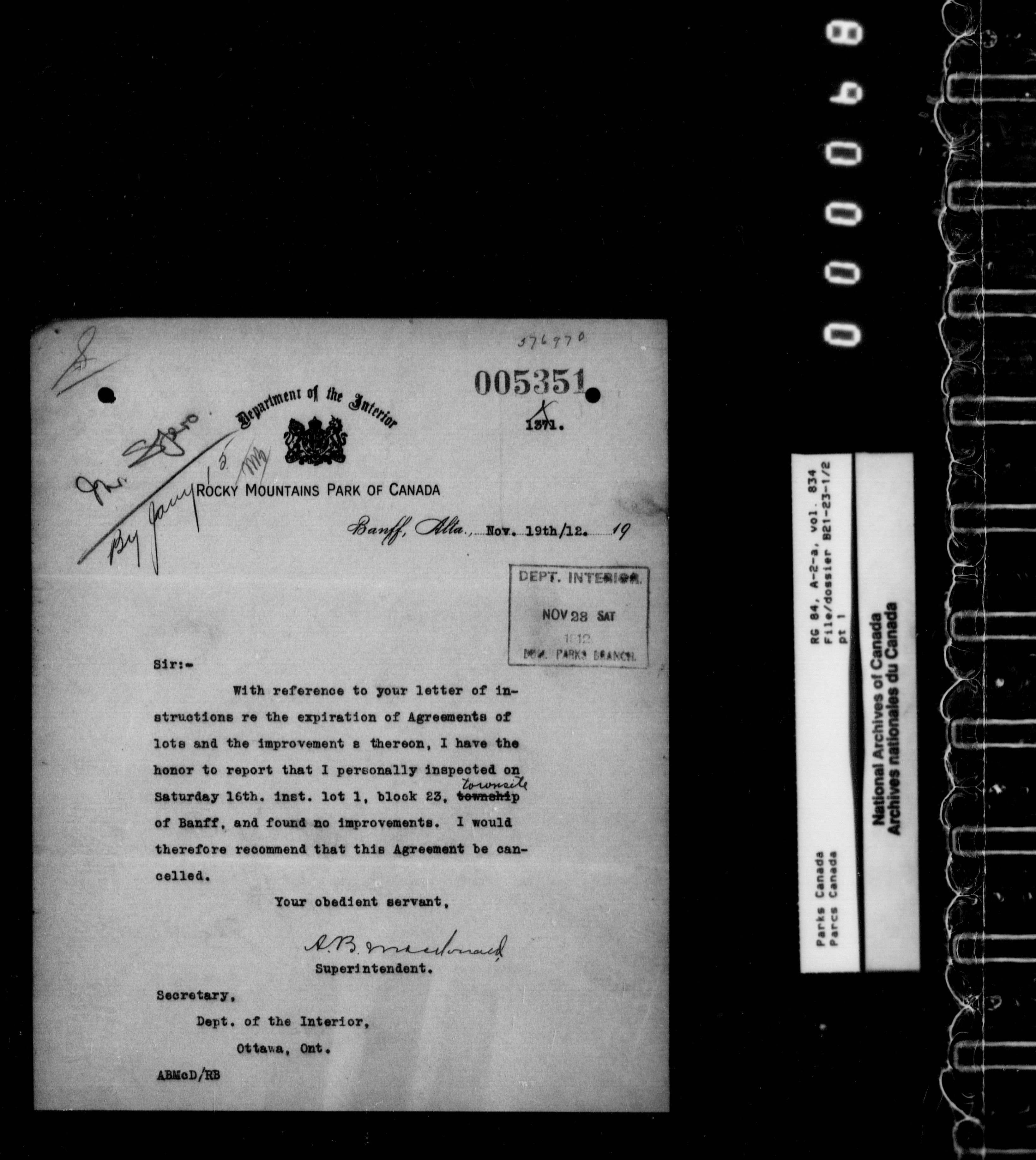 Department of Canadian Heritage, Canadian Parks Service : Park/subject classification system - 9543