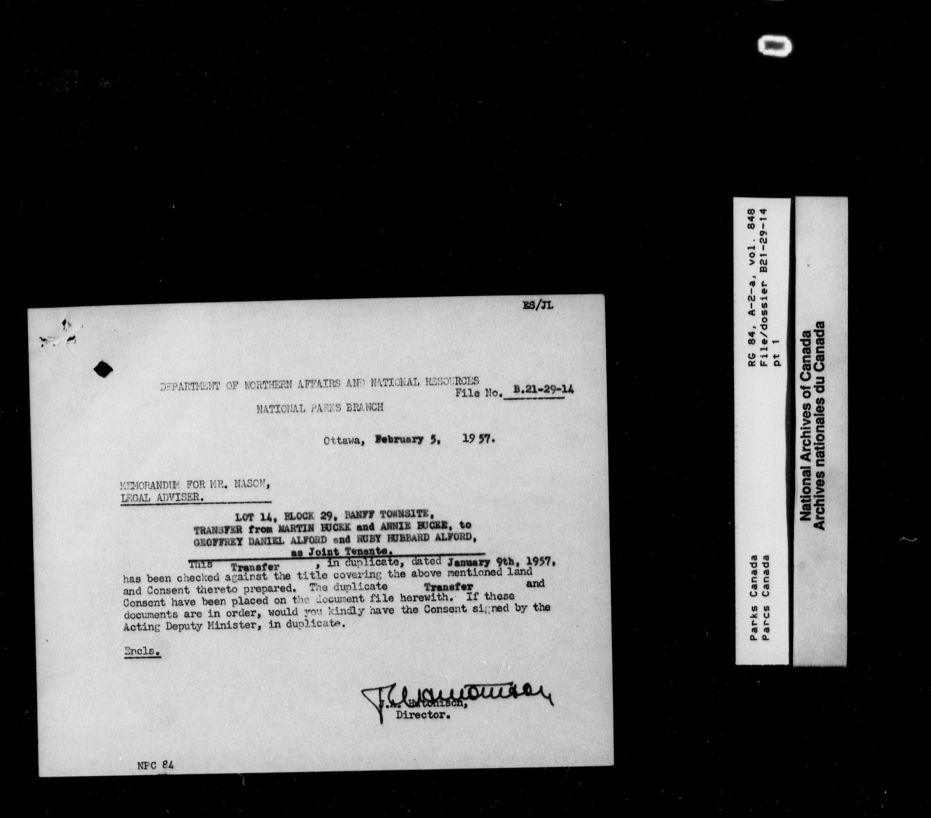 Department of Canadian Heritage, Canadian Parks Service : Park/subject classification system - 9553