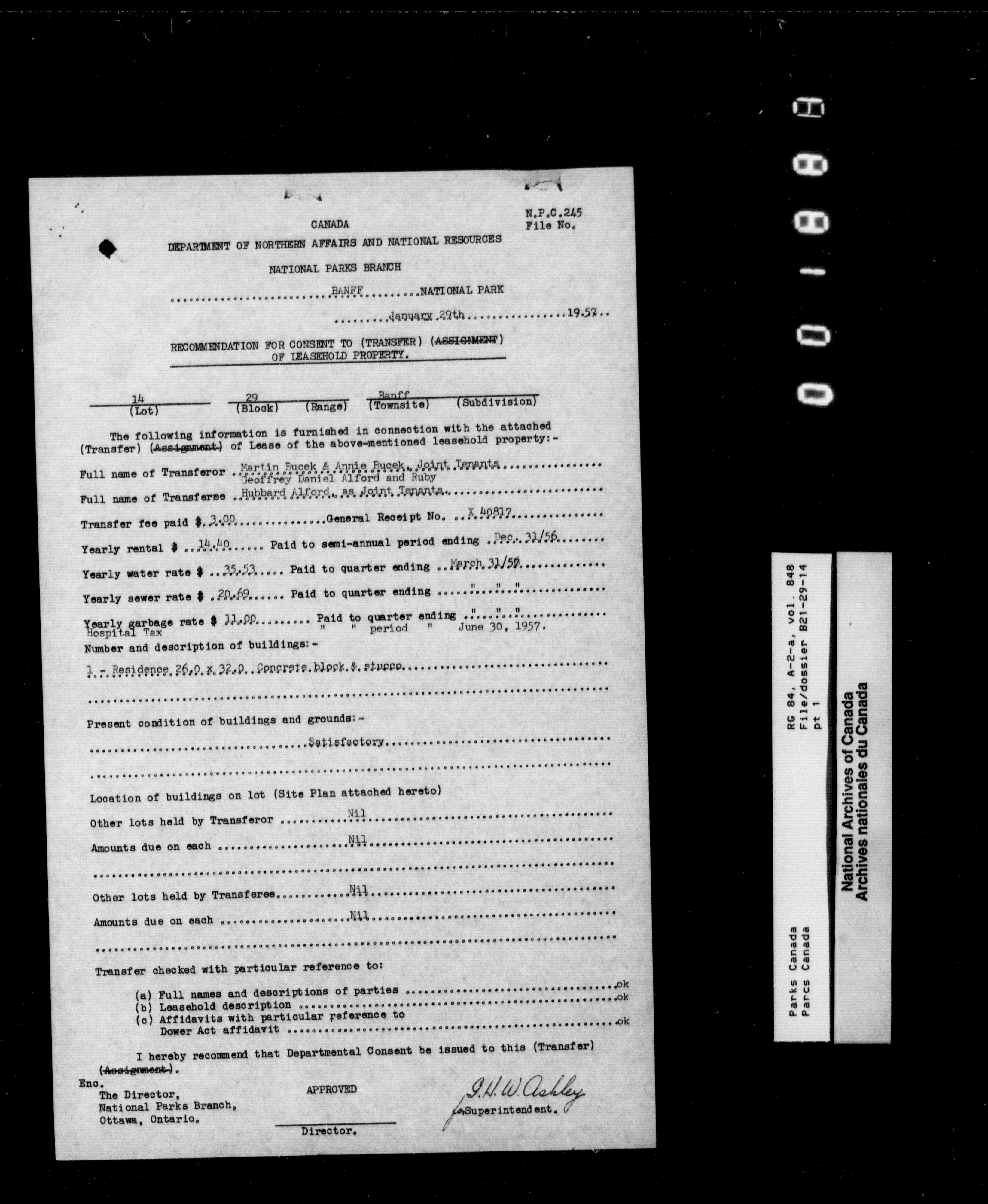 Department of Canadian Heritage, Canadian Parks Service : Park/subject classification system - 9553