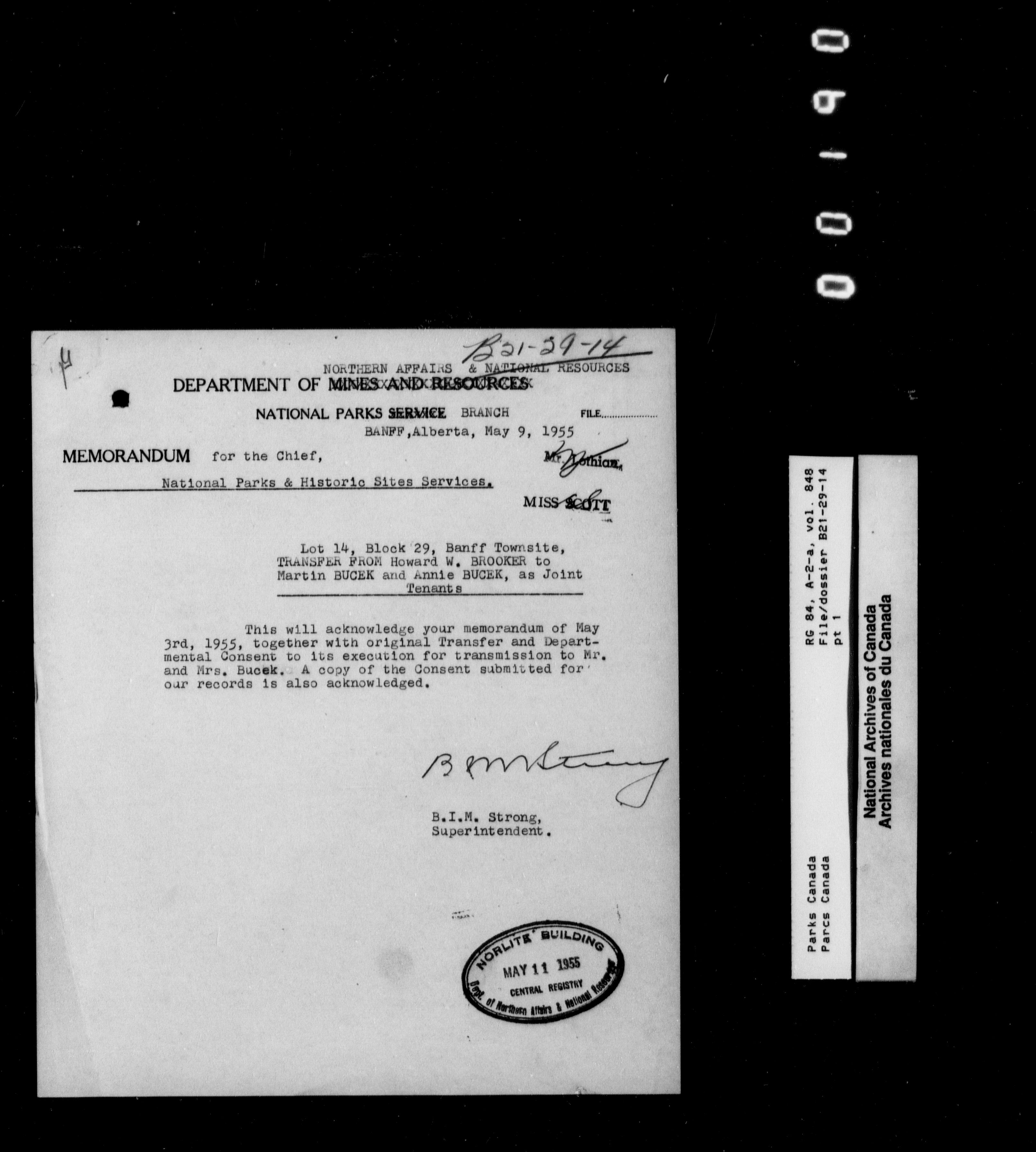 Department of Canadian Heritage, Canadian Parks Service : Park/subject classification system - 9553